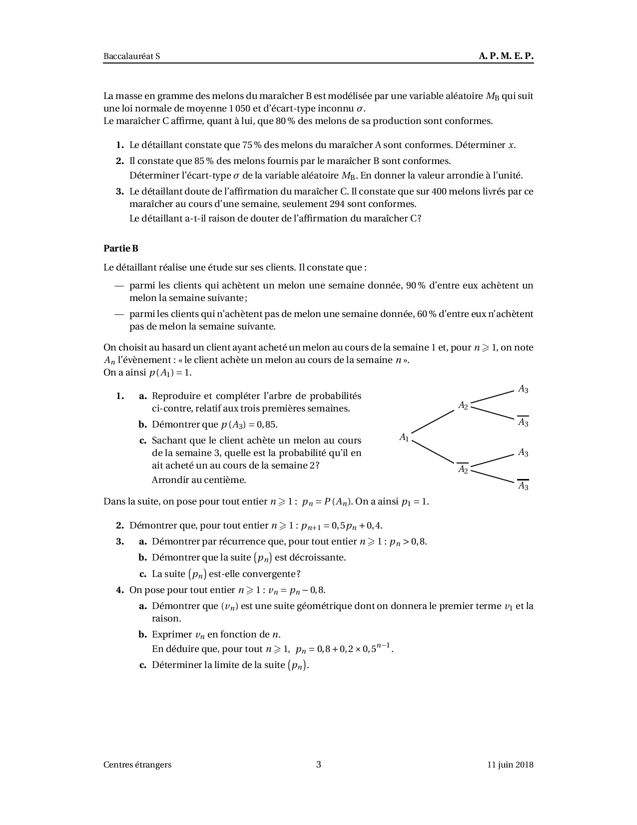 Annale Maths Bac S Centres étrangers juin 2018 - Sujet