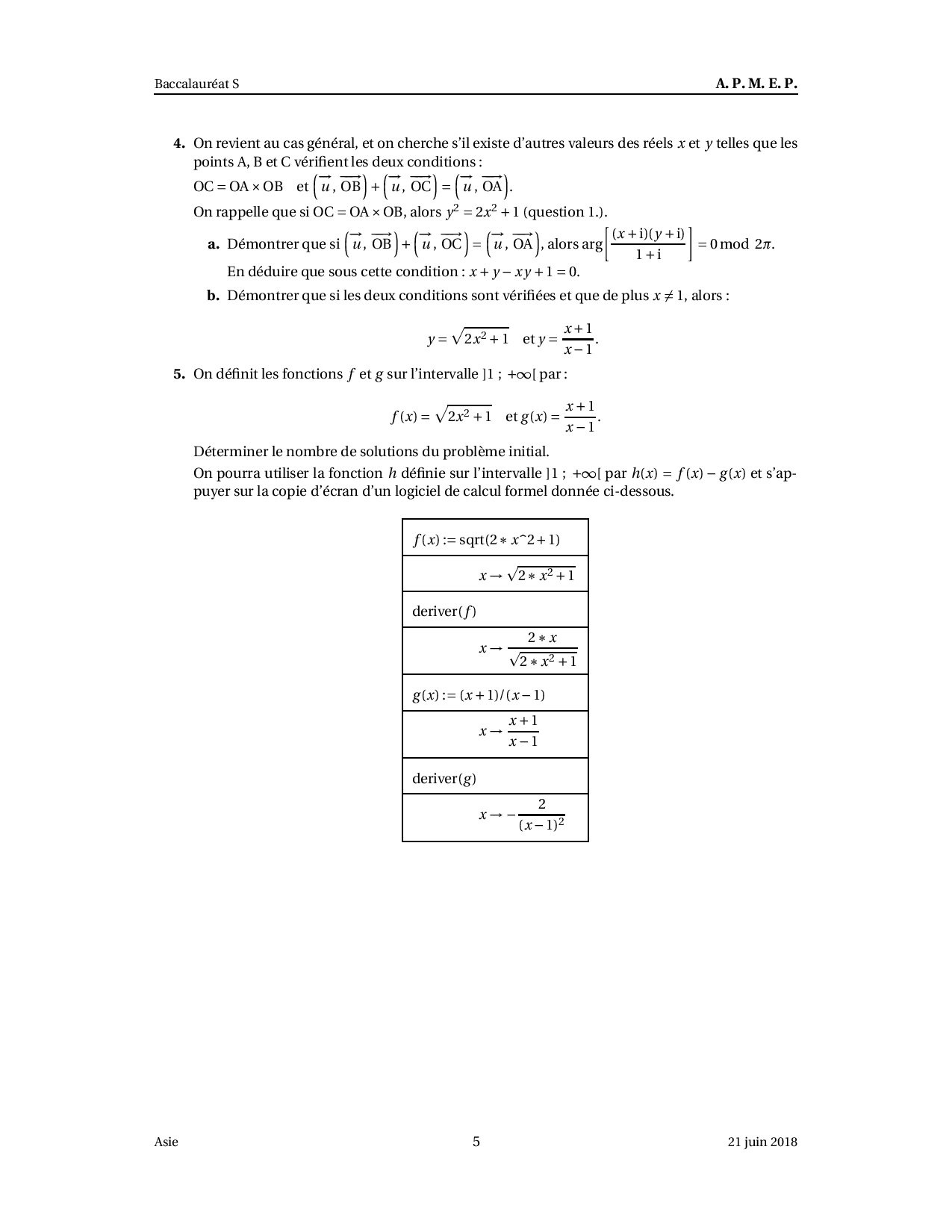 Annale Maths Bac S Asie juin 2018 - Sujet
