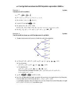 Annale Maths Bac ES Polynésie septembre 2008 - Corrigé
