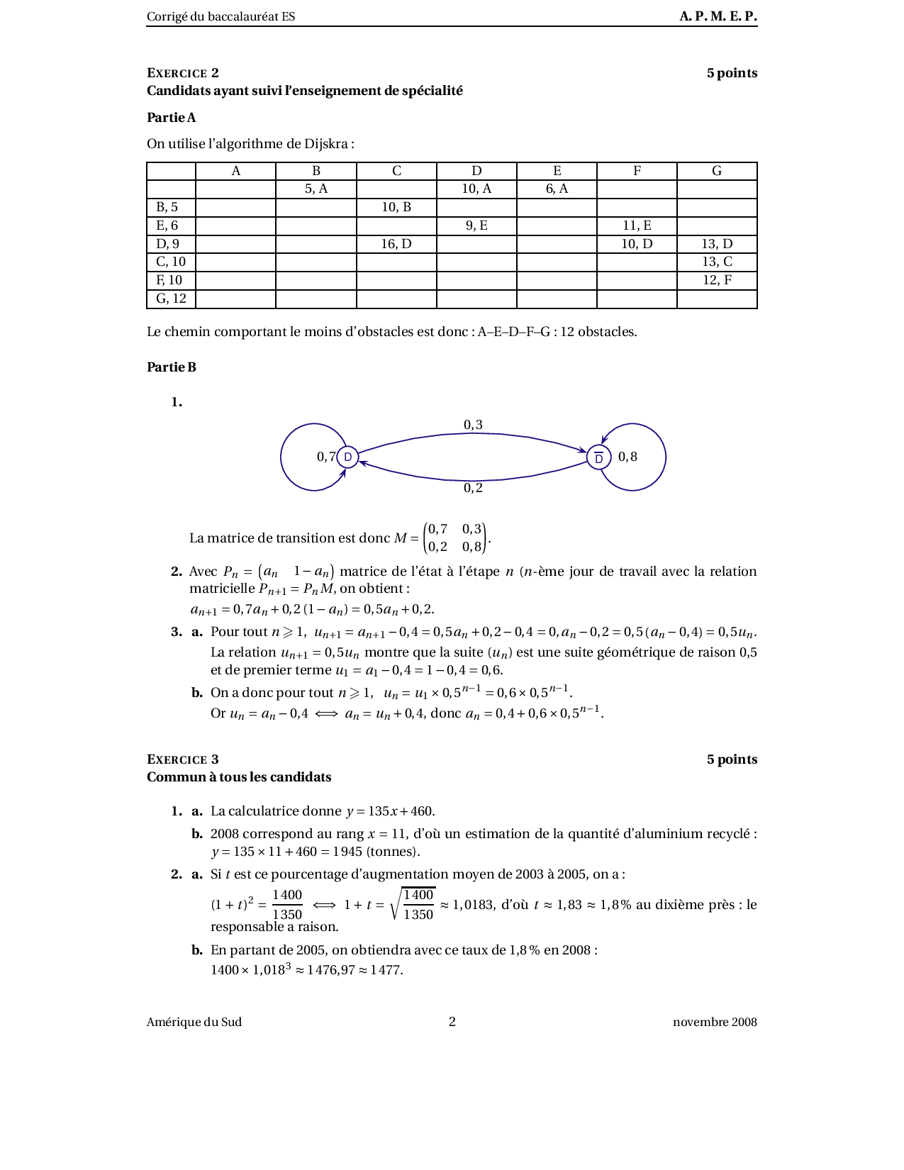 Annale Maths Bac ES Amérique du sud novembre 2008 - Corrigé