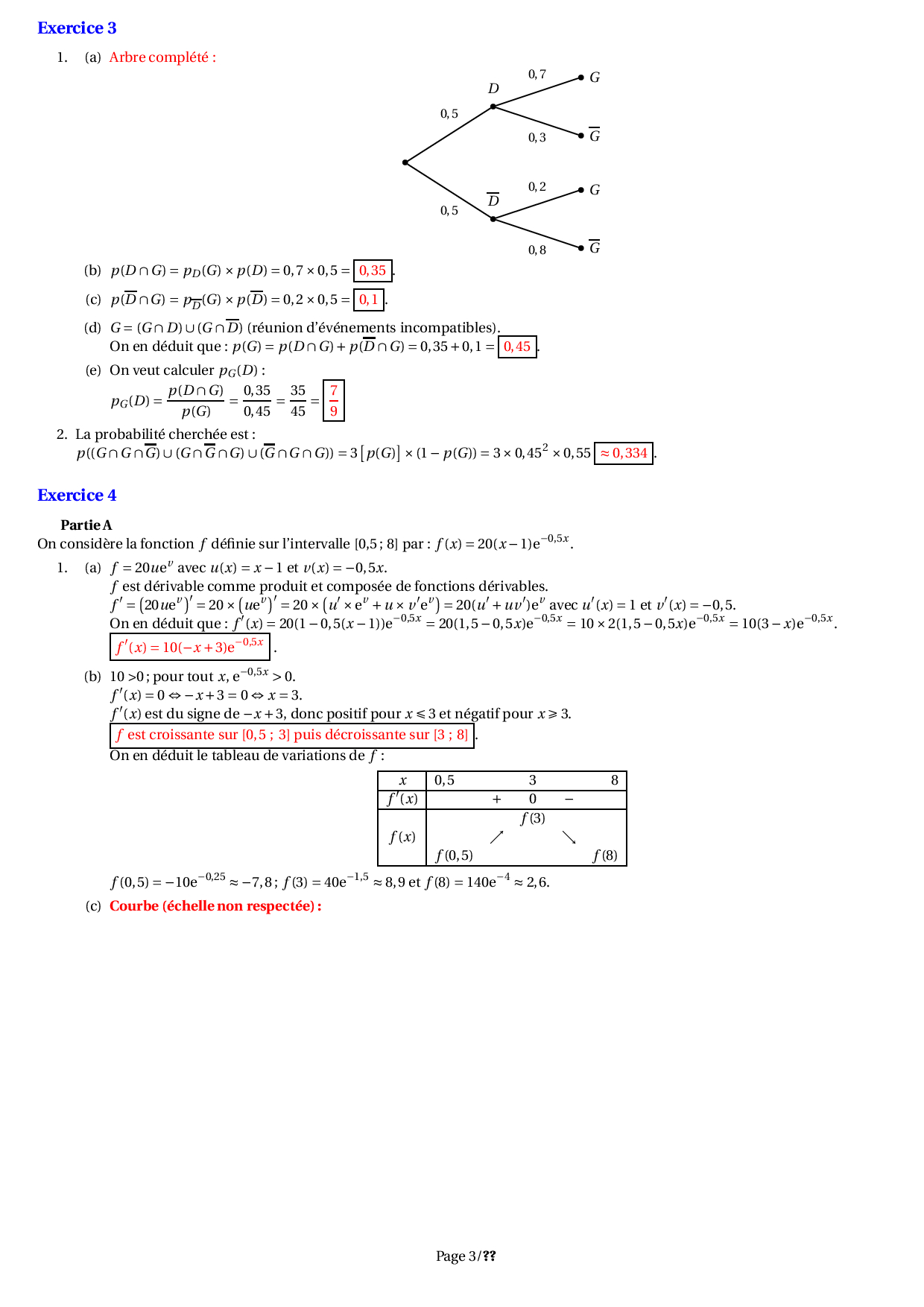 Annale Maths Bac ES Métropole juin 2009 - Corrigé