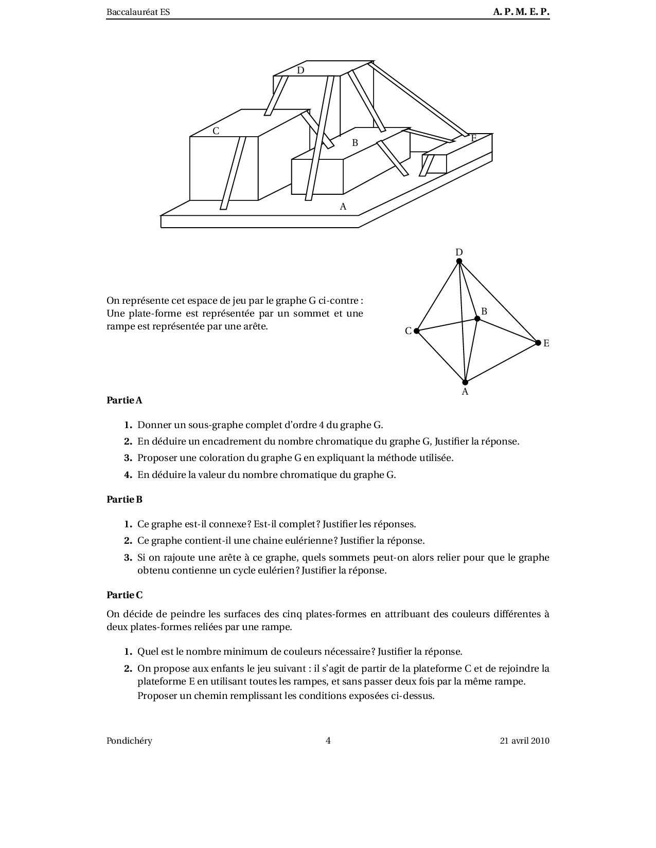 Annale Maths Bac ES Pondichéry avril 2010 - Sujet
