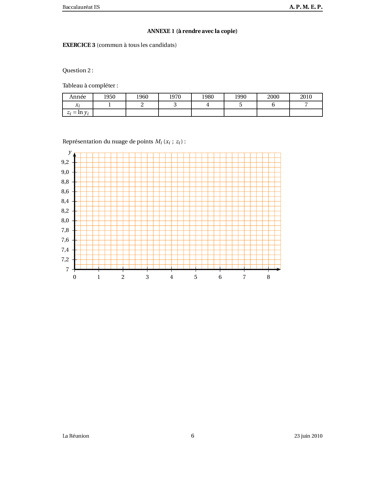 Annale Maths Bac ES La Réunion juin 2010 - Sujet