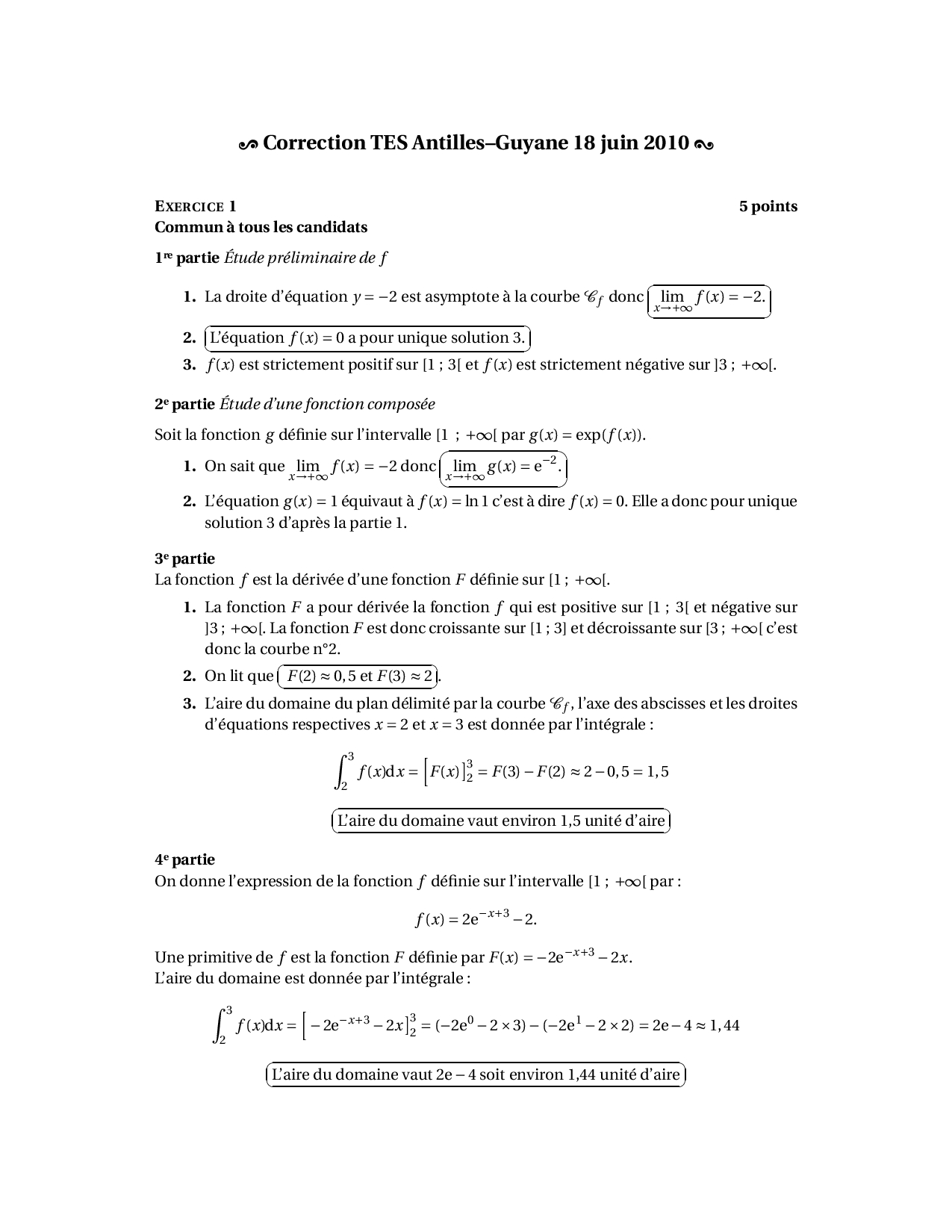Annale Maths Bac ES Antilles-Guyane juin 2010 - Corrigé