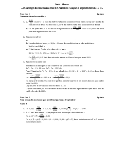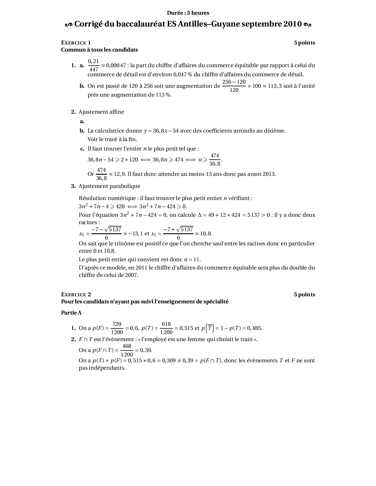 Annale Maths Bac ES Antilles-Guyane septembre 2010 - Corrigé