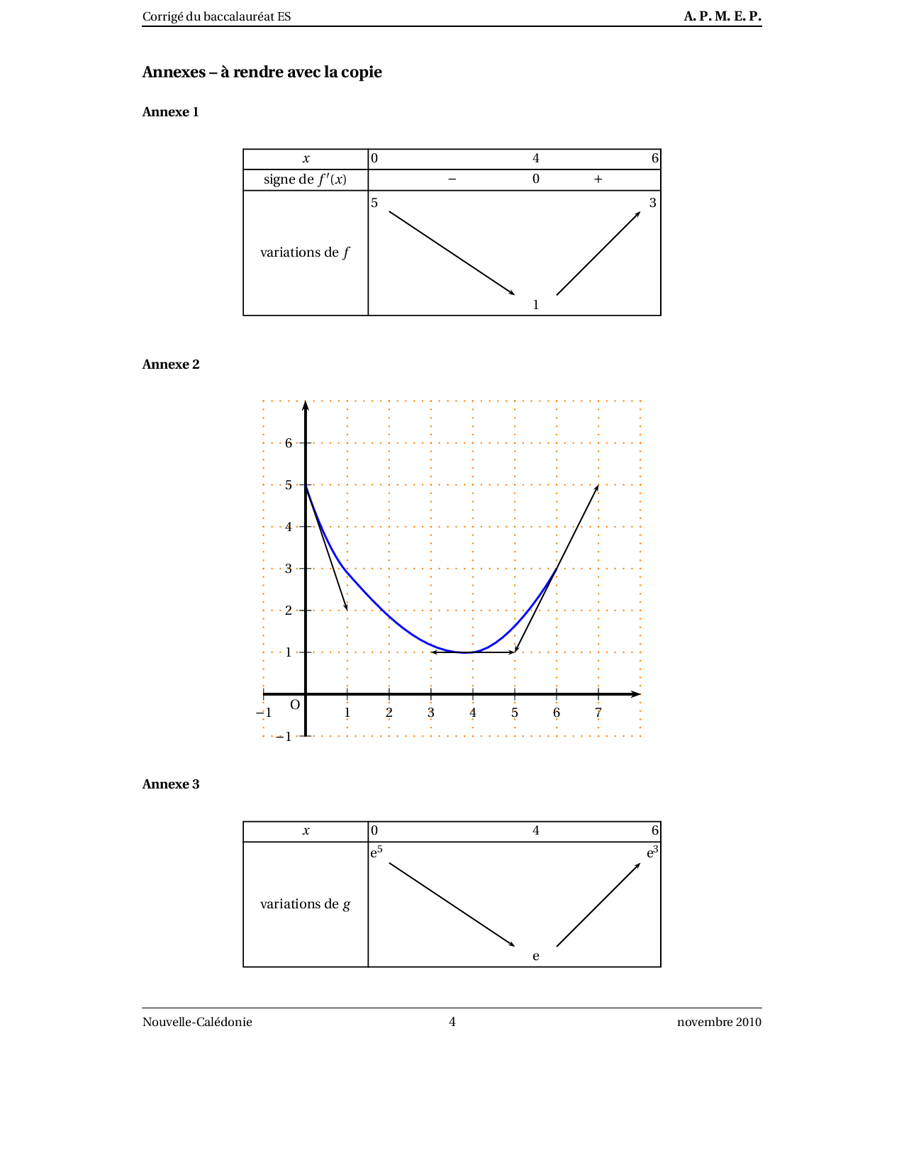 Annale Maths Bac ES Nouvelle calédonie novembre 2010 - Corrigé