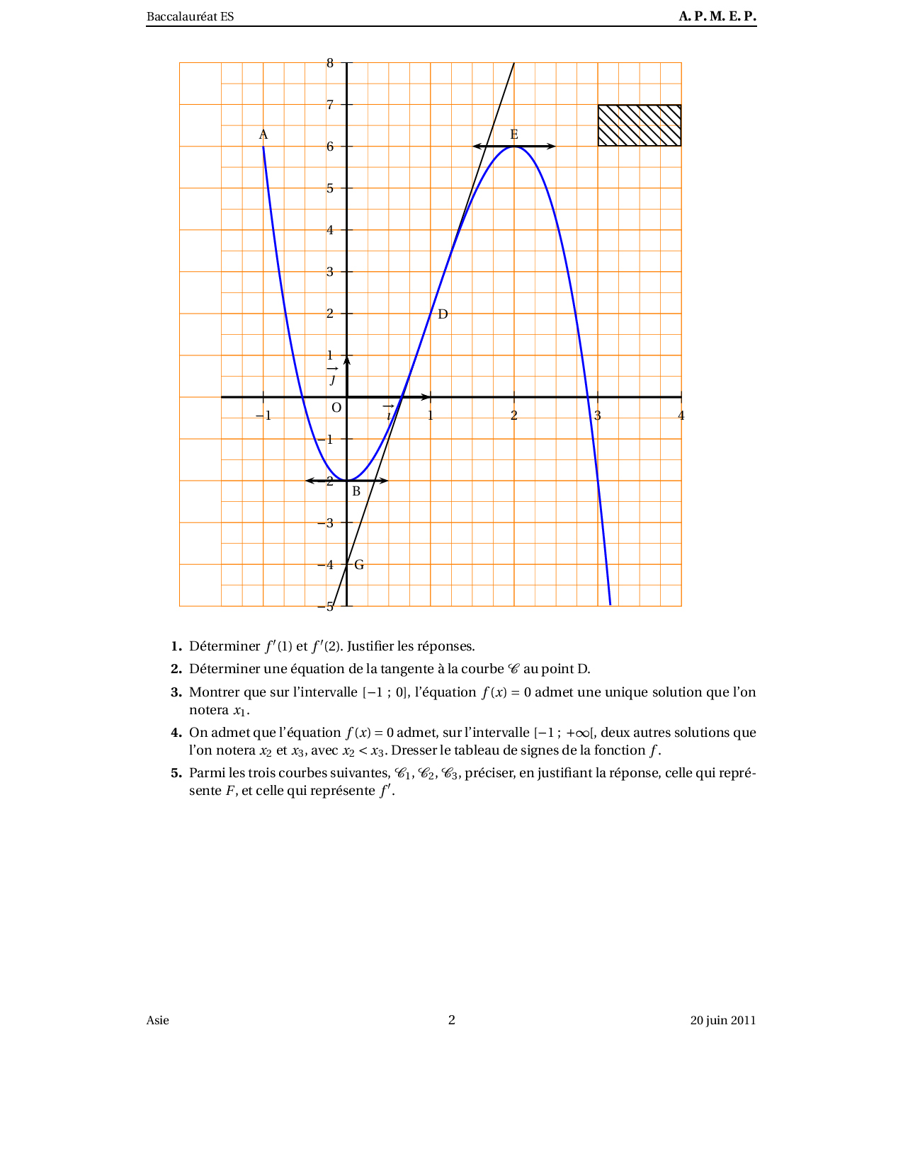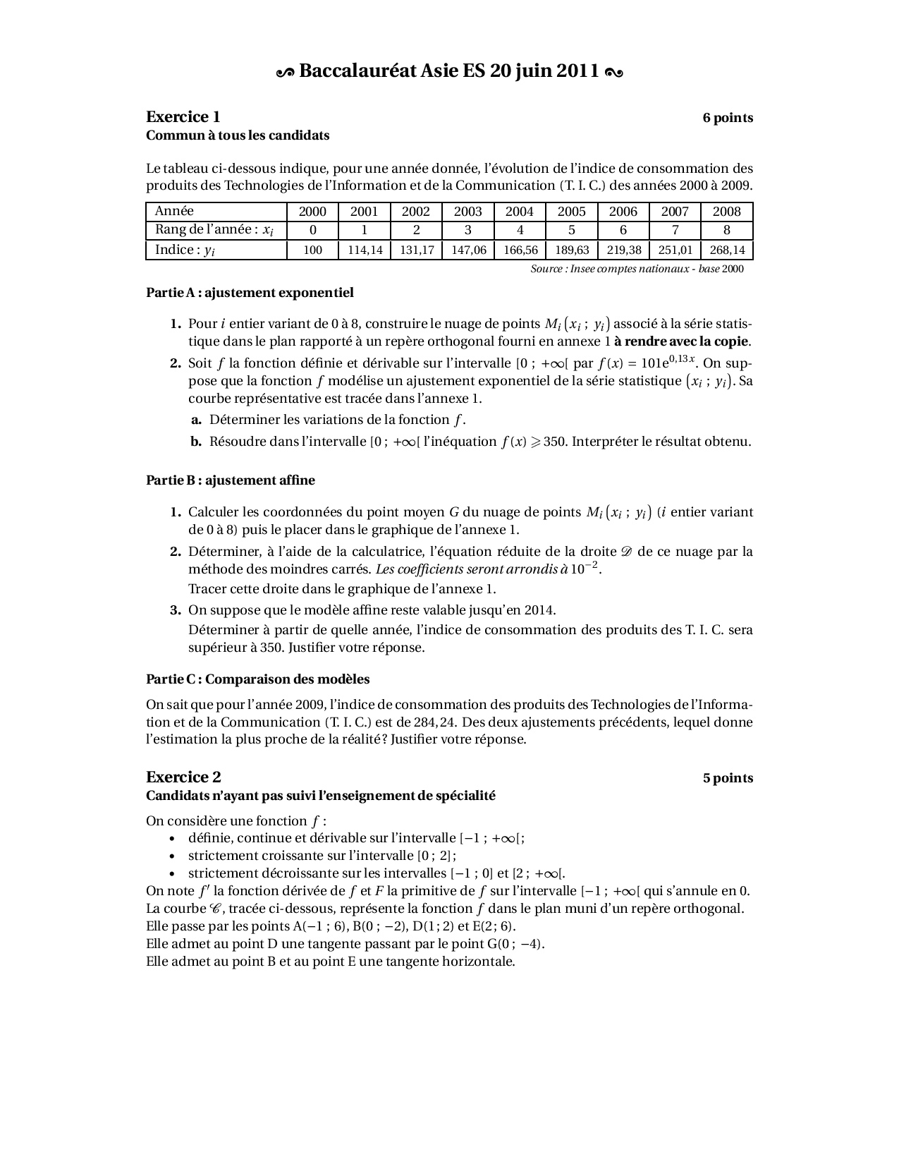 Annale Maths Bac ES Asie juin 2011 - Sujet