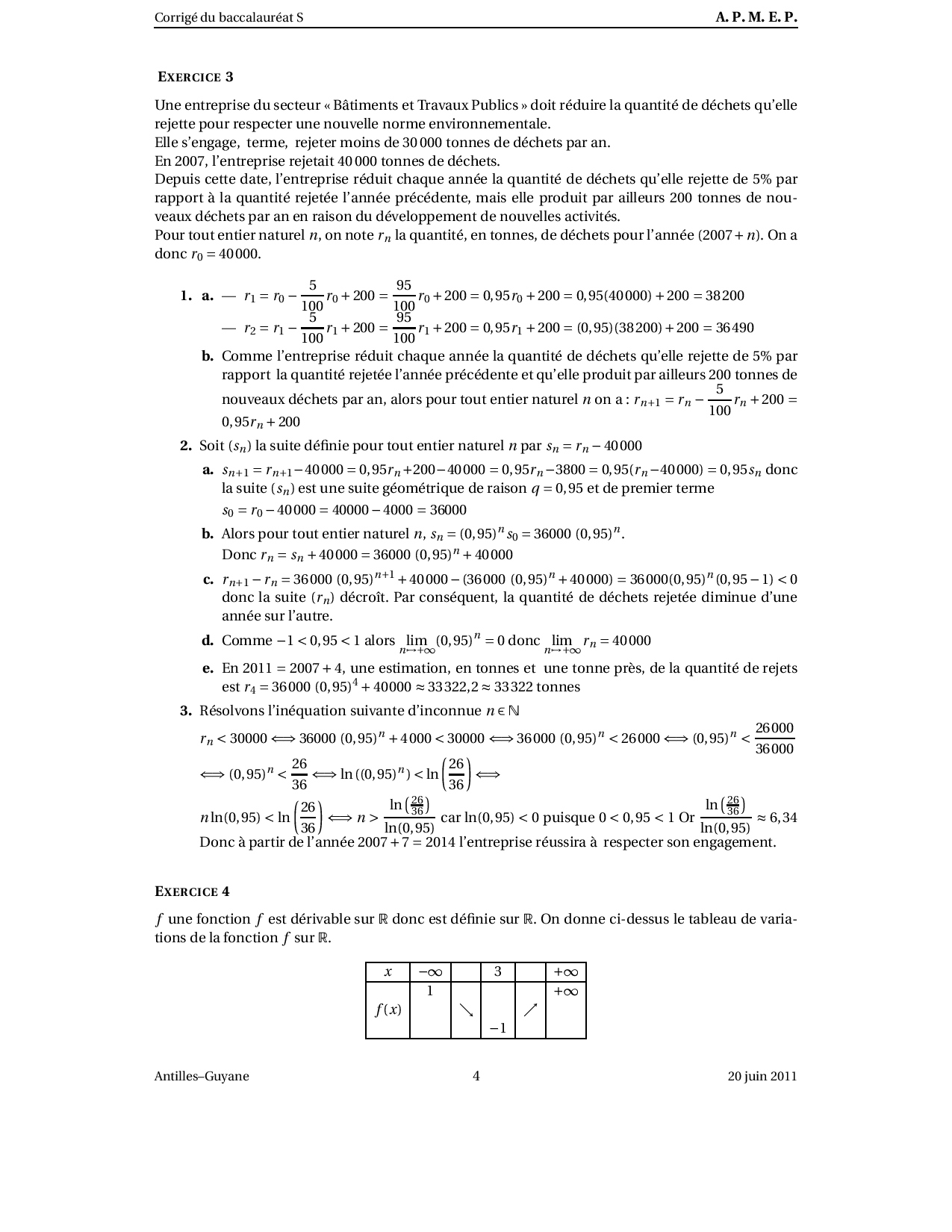 Annale Maths Bac ES Antilles-Guyane juin 2011 - Sujet