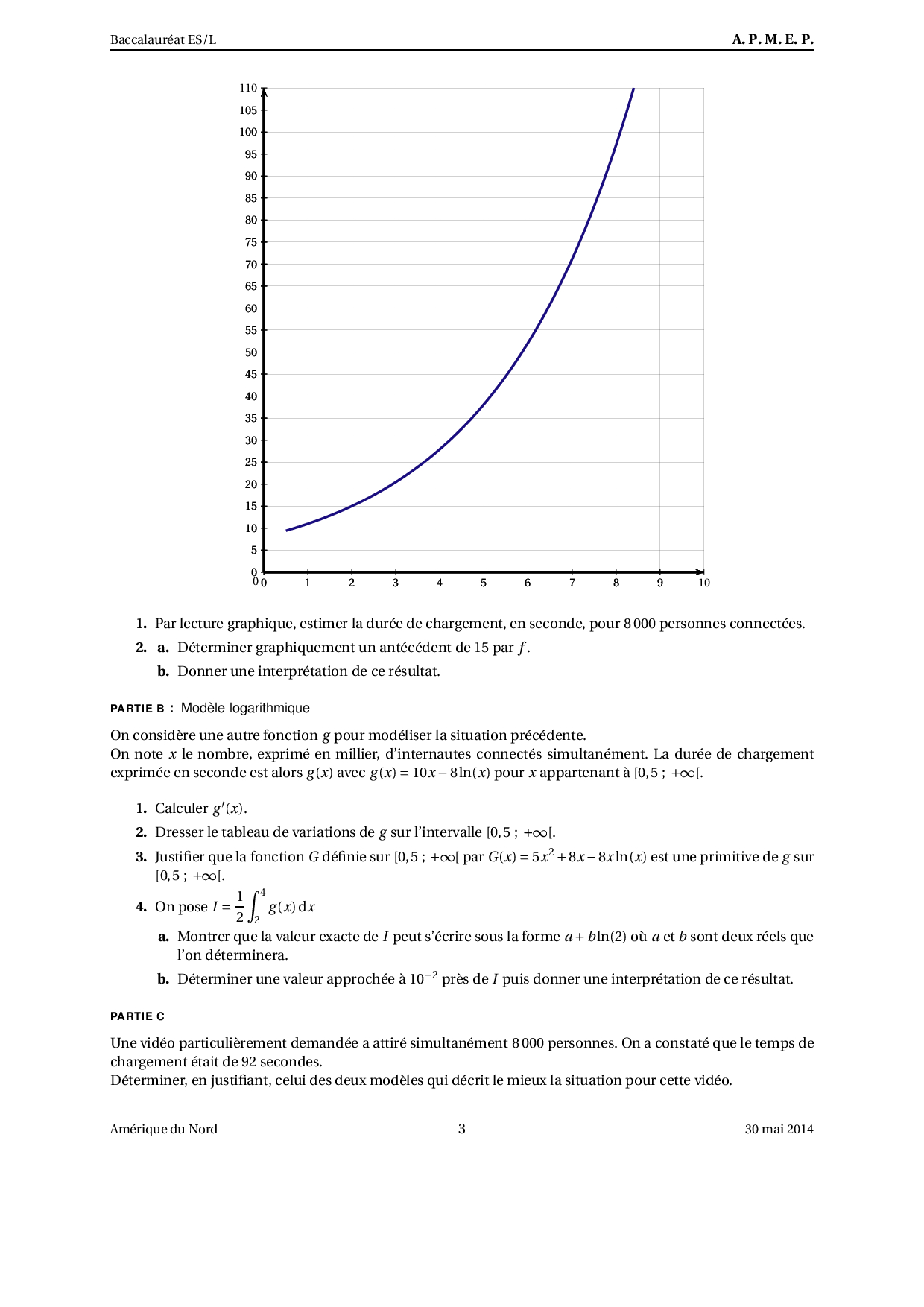 Annale Maths Bac ES-L Amérique du nord mai 2014 - Sujet