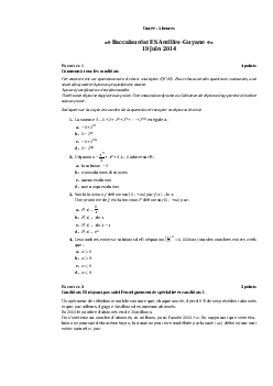 Annale Maths Bac ES-L Antilles-Guyane juin 2014 - Sujet