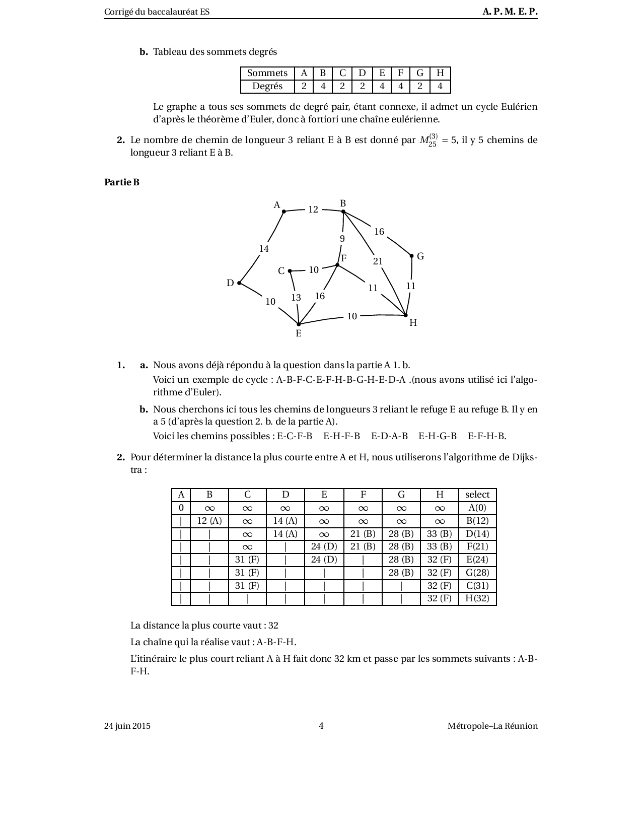 Annale Maths Bac ES-L Métropole juin 2015 - Corrigé