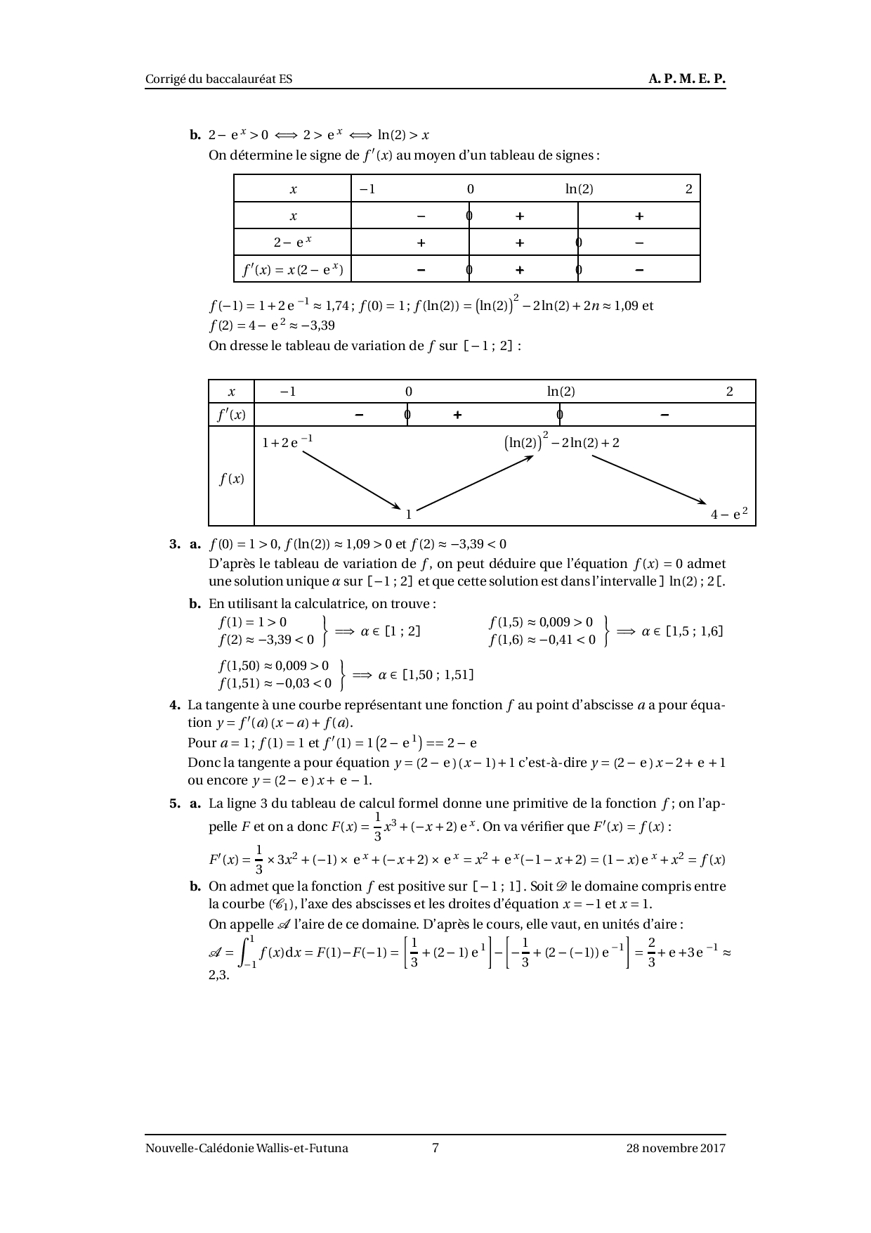 Annale Maths Bac ES-L Nouvelle calédonie novembre 2017 - Corrigé