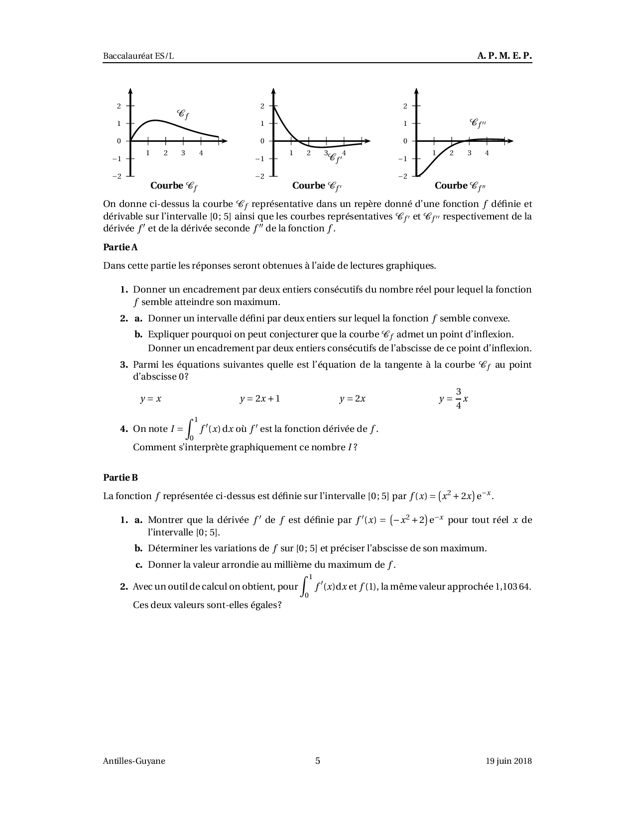 Annale Maths Bac ES-L Antilles-Guyane juin 2018 - Sujet