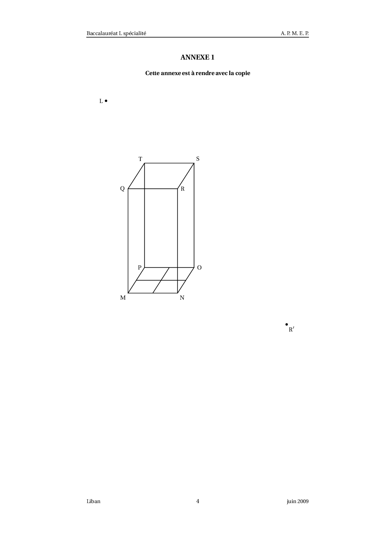 Annale Maths Bac L Liban juin 2009 - Sujet