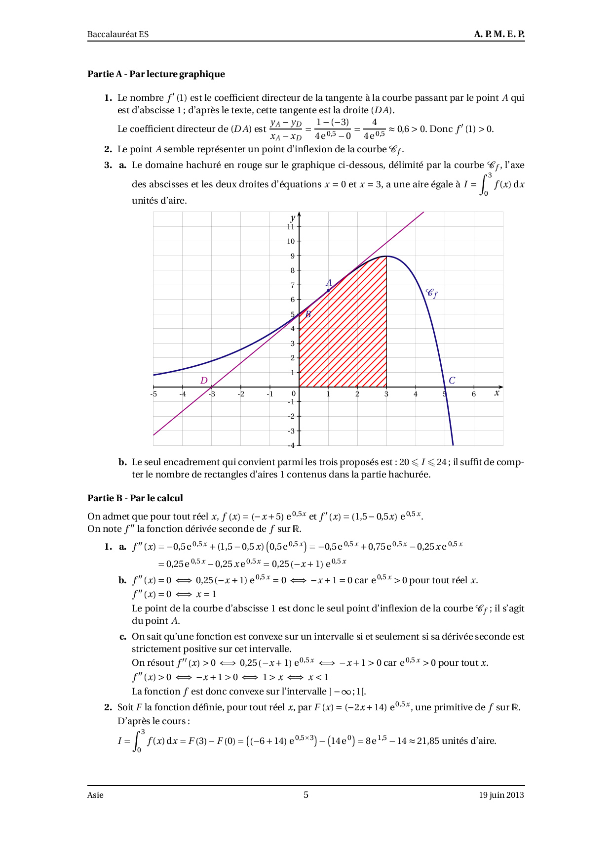 Annale Maths Bac ES-L Asie juin 2013 - Corrigé