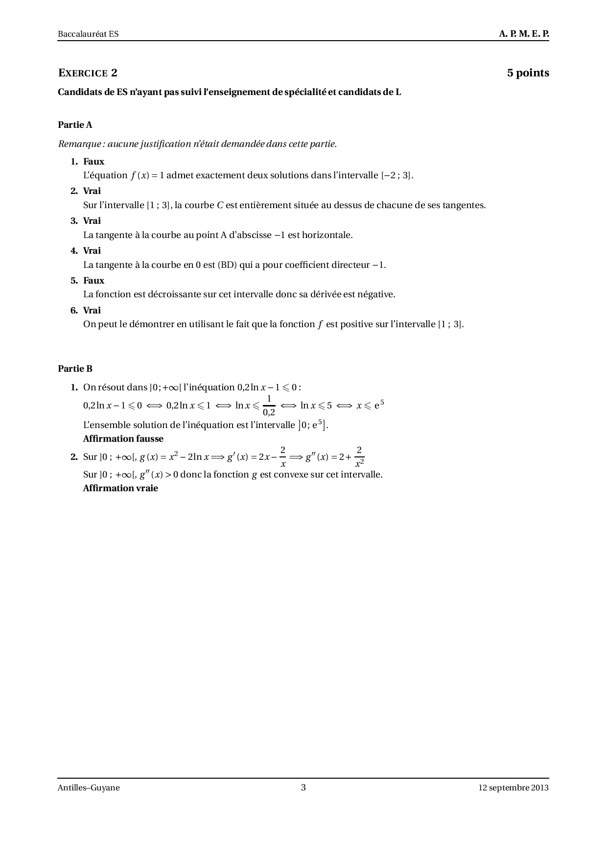 Annale Maths Bac ES-L Antilles-Guyane septembre 2013 - Corrigé