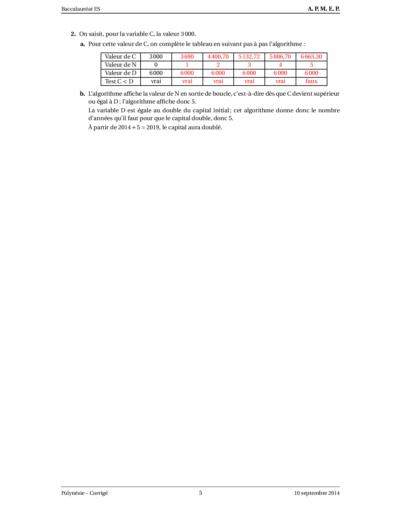 Annale Maths Bac ES-L Polynésie septembre 2014 - Corrigé