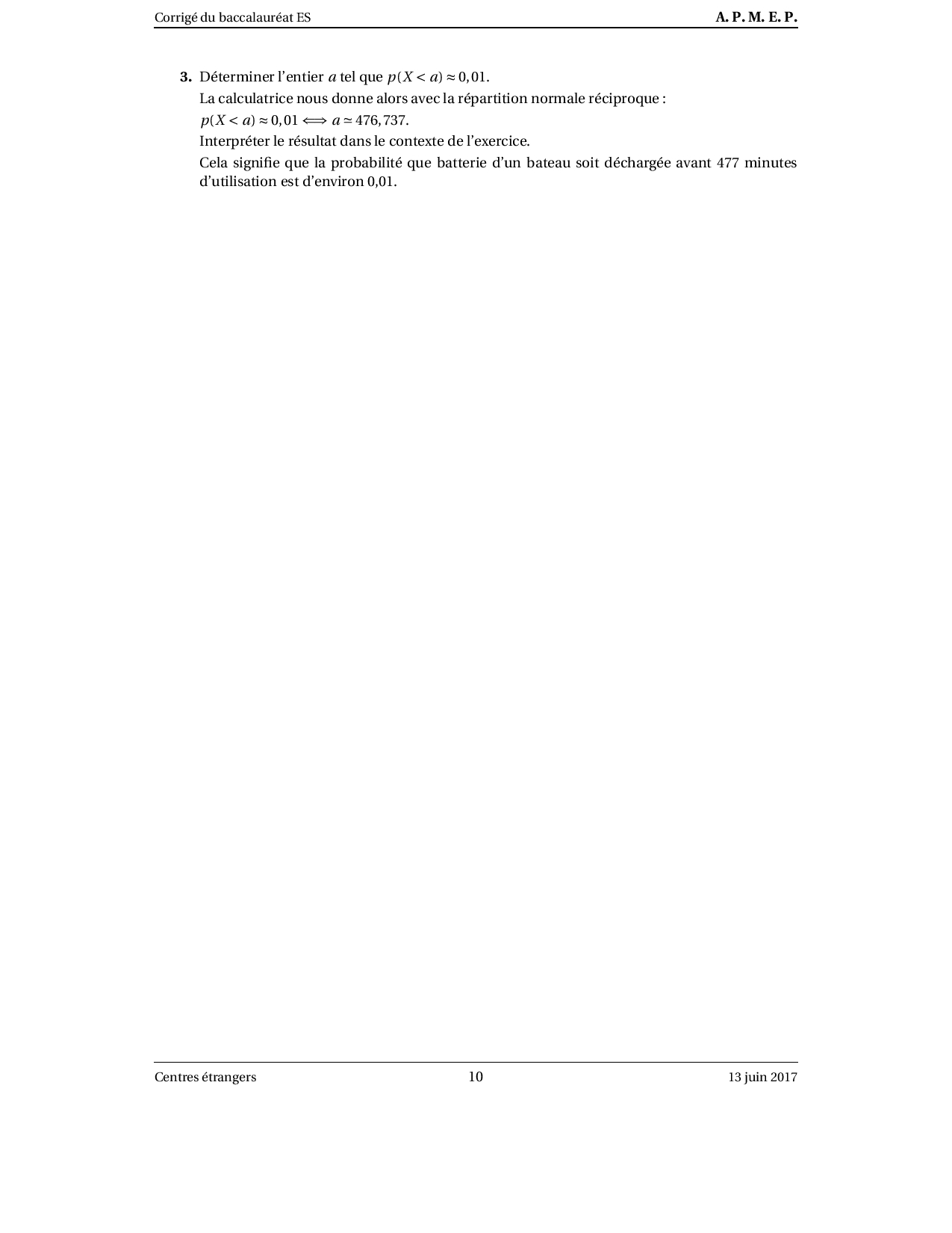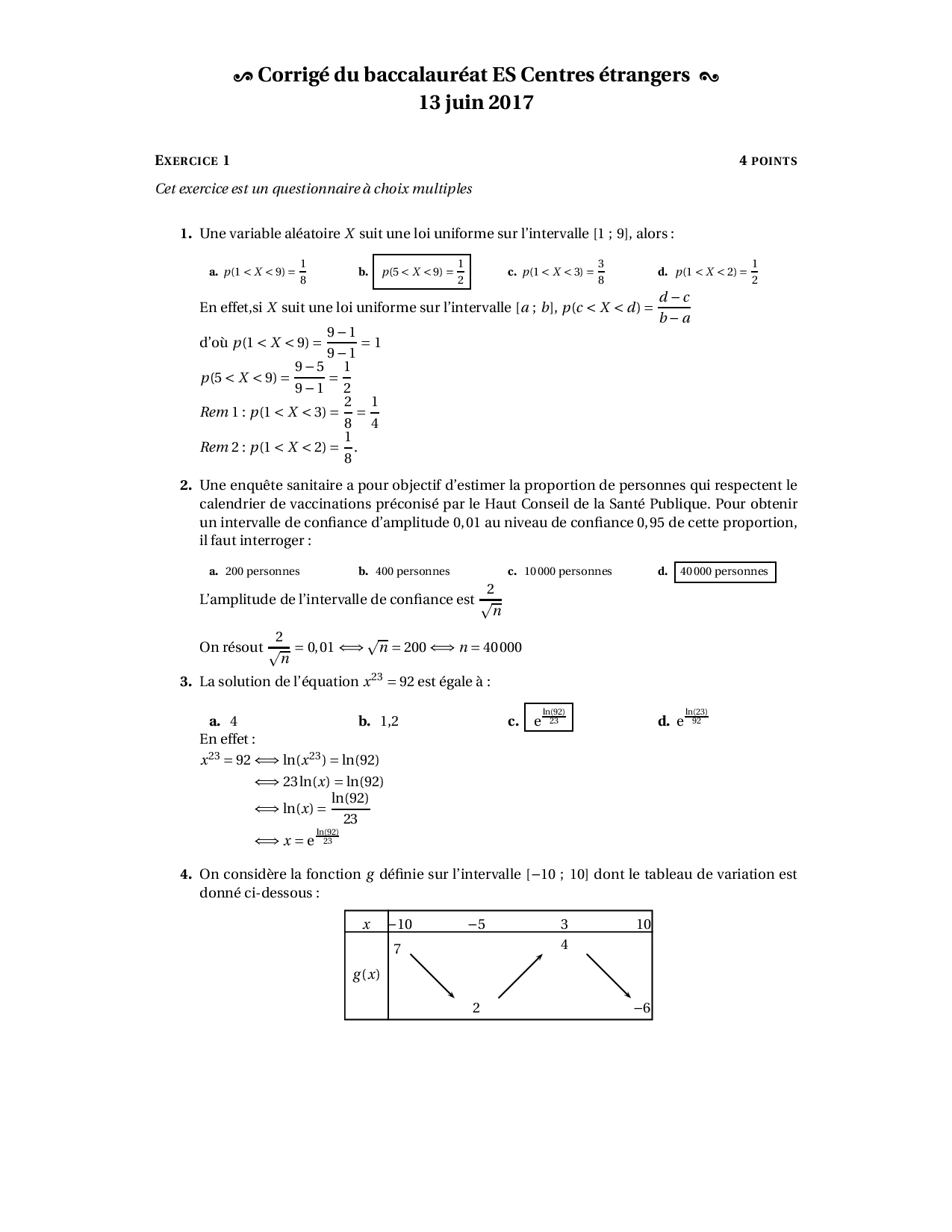 Annale Maths Bac ES-L Centres étrangers juin 2017 - Corrigé
