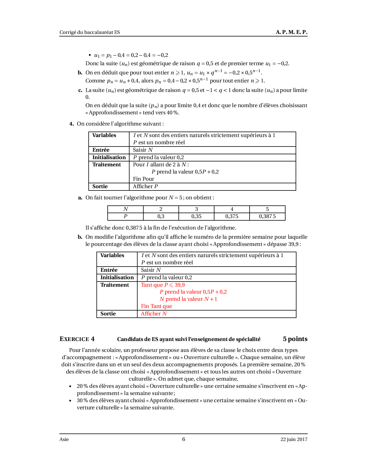 Annale Maths Bac ES-L Asie juin 2017 - Corrigé