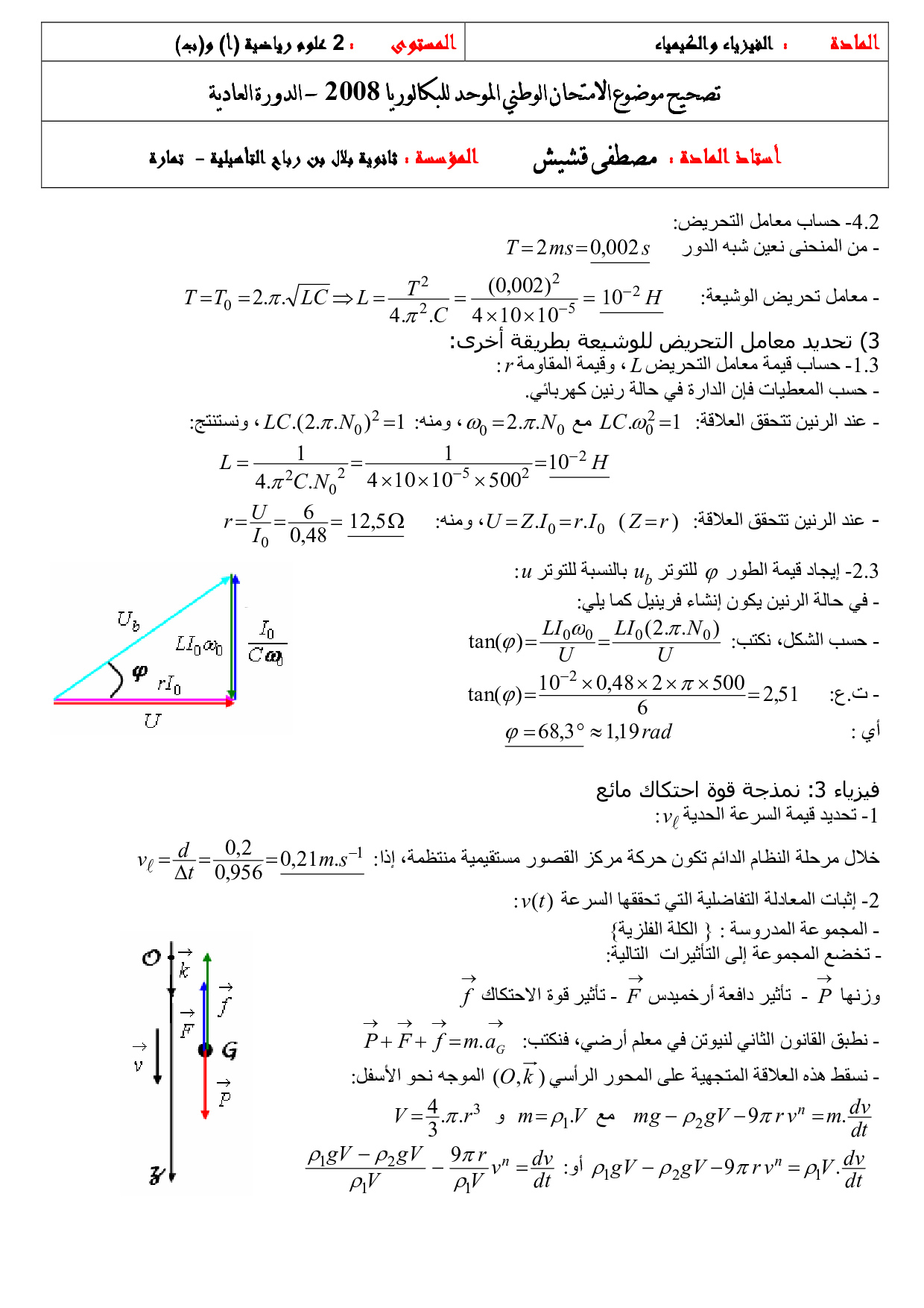 الفيزياء والكيمياء علوم رياضية 2008 الدورة العادية - التصحيح