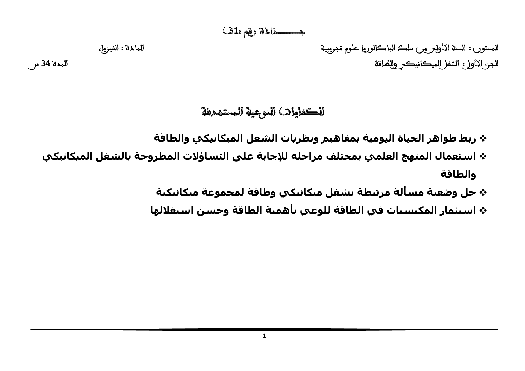 جذاذات الفيزياء والكيمياء للسنة أولى بكالوريا
