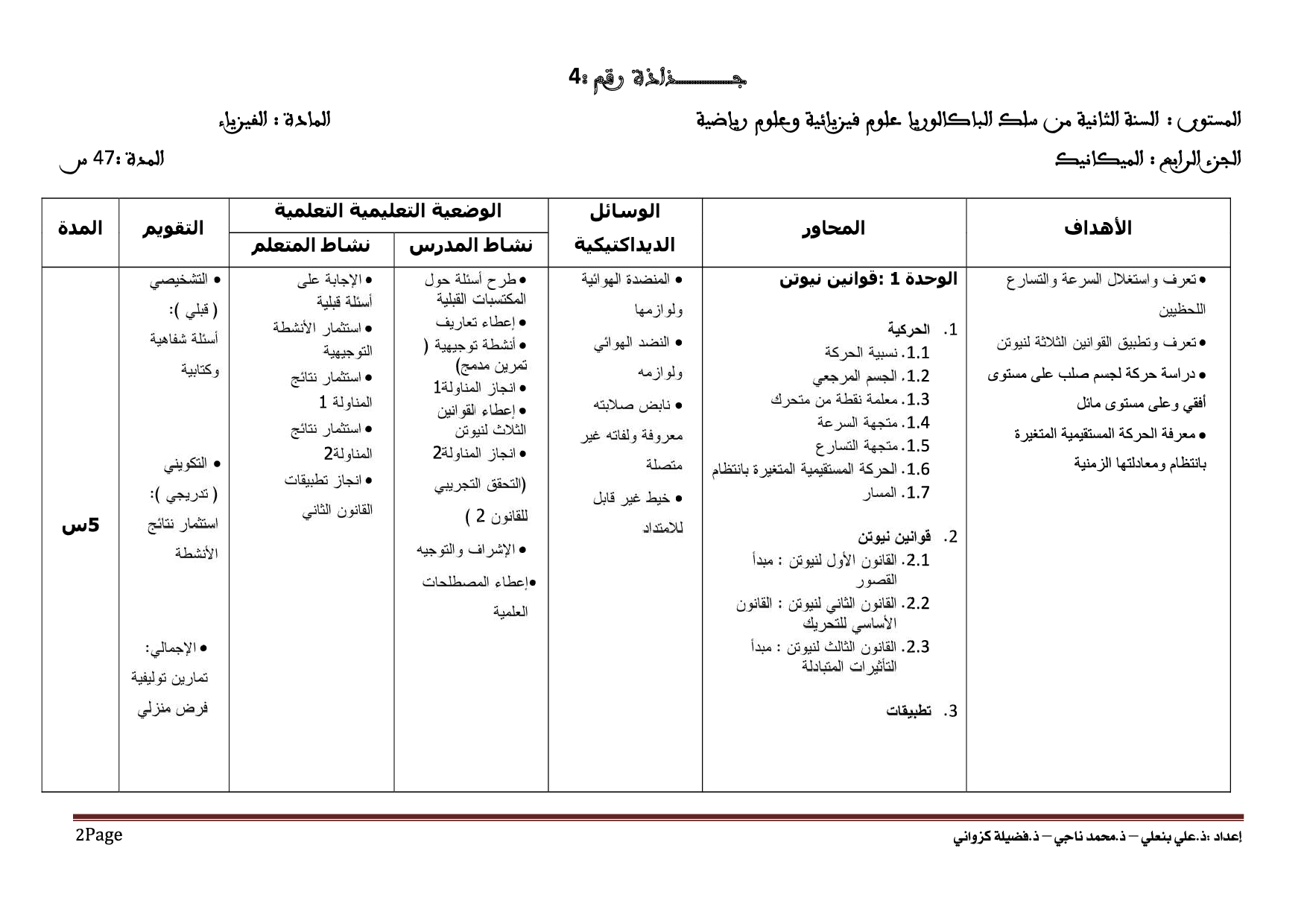 جذاذات الفيزياء والكيمياء للسنة الثانية بكالوريا