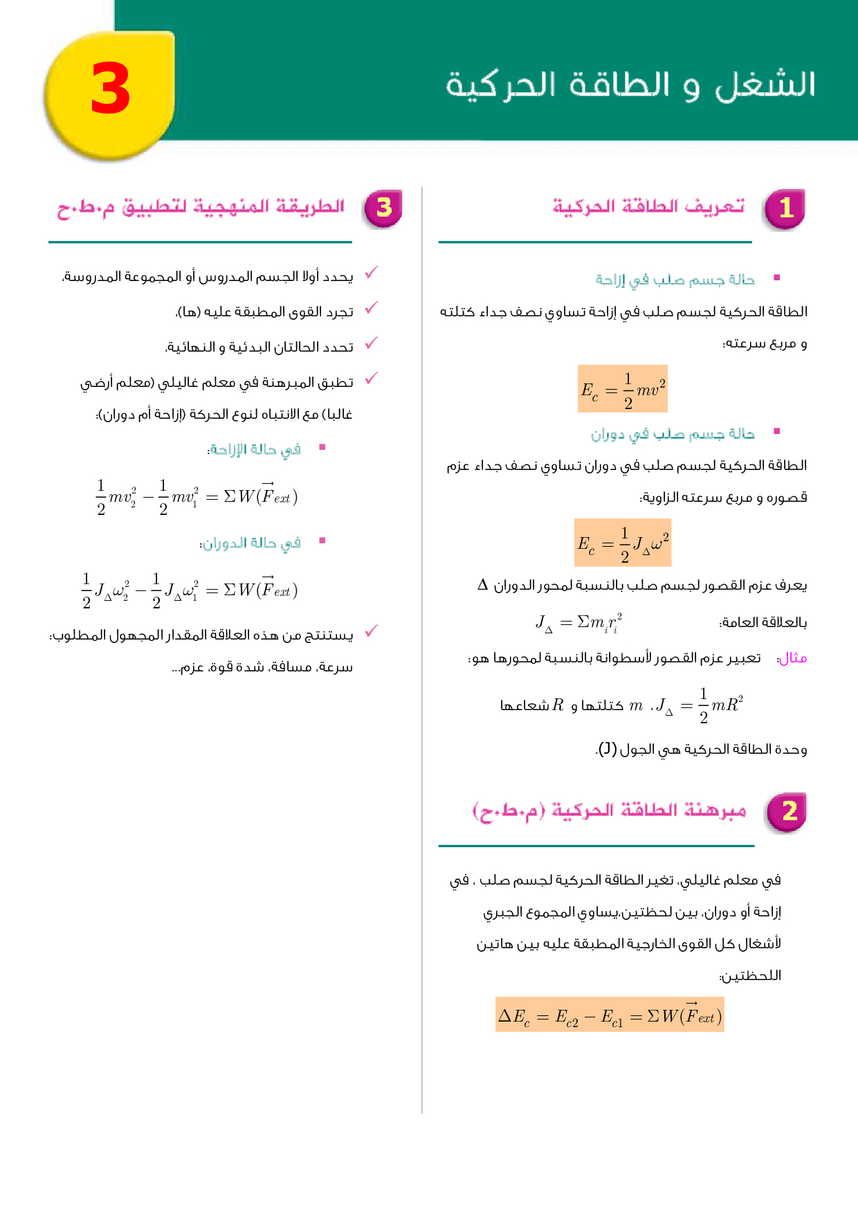 الشغل والطاقة الحركية - ملخص الدرس 1