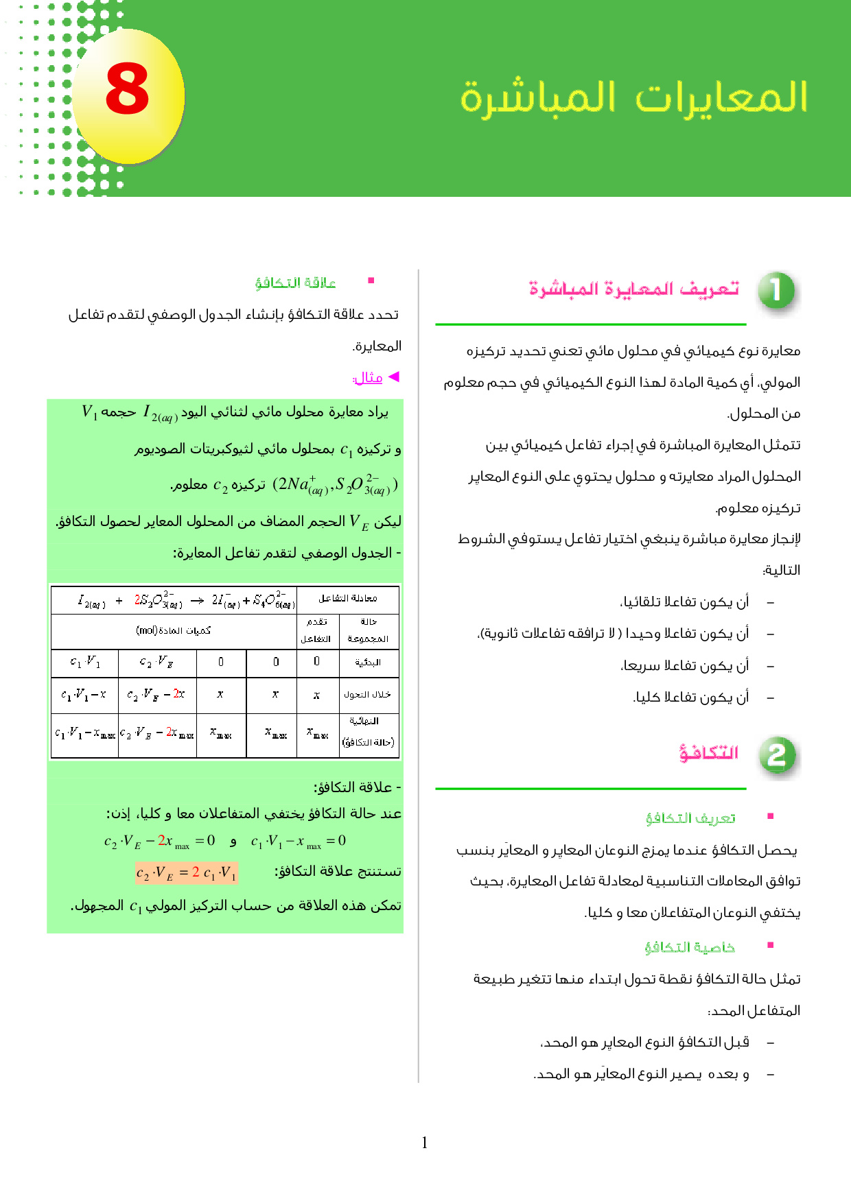 المعايرات المباشرة - ملخص الدرس 1