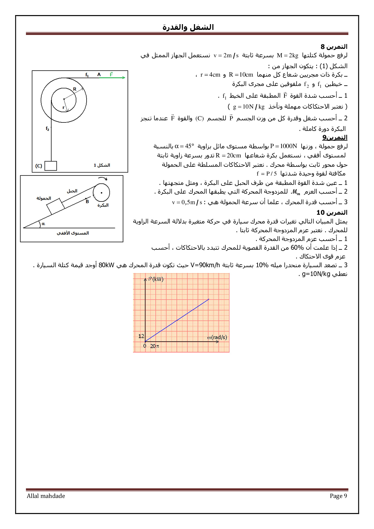 شغل وقدرة قوة - تمارين غير محلولة 6
