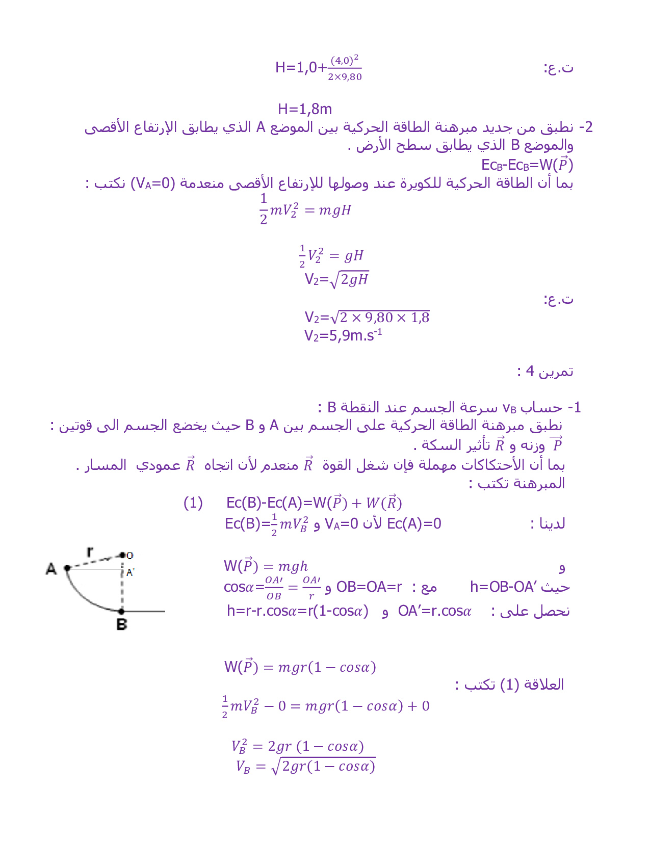 الشغل والطاقة الحركية - تصحيح سلسلة التمارين 2