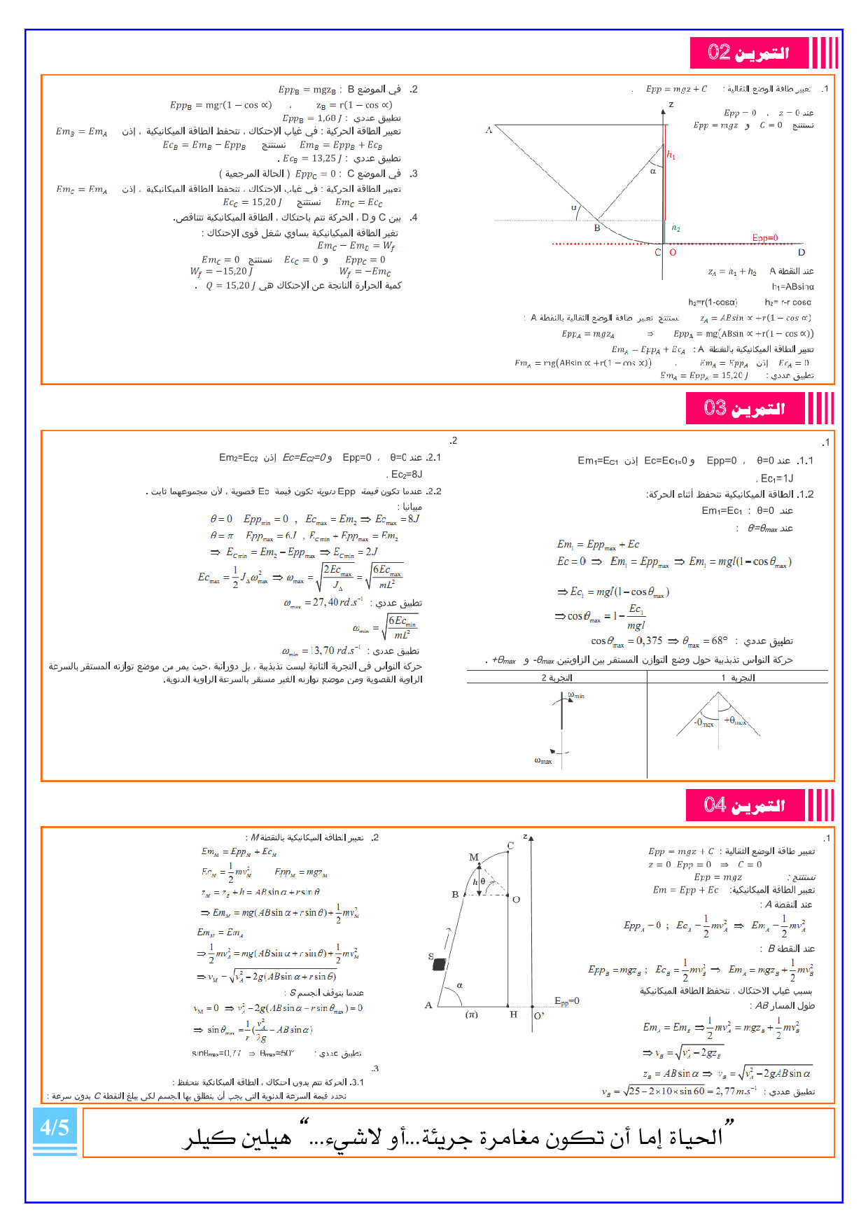 الشغل وطاقة الوضع الثقالية - الطاقة الميكانيكية - تمارين غير محلولة 3