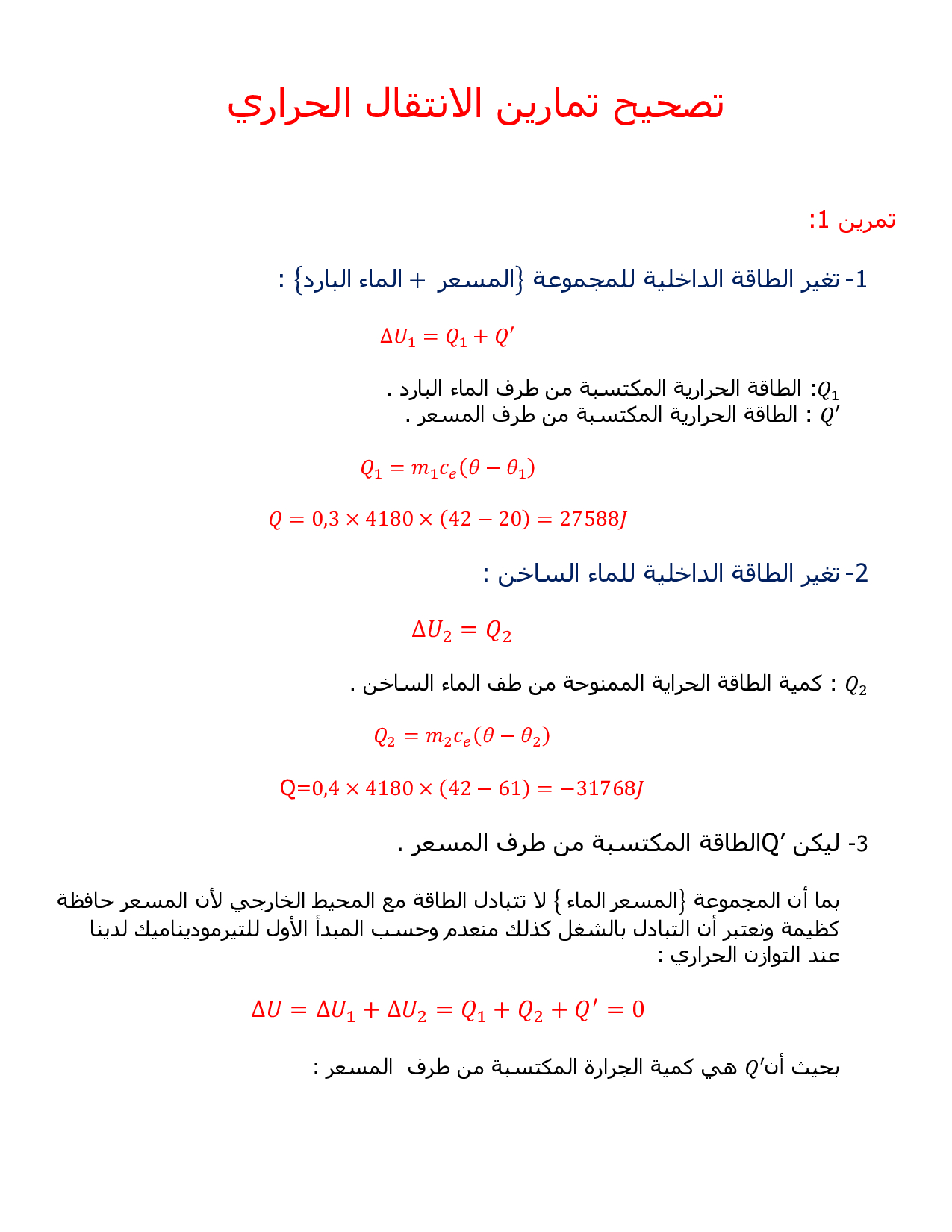 الطاقة الحرارية والانتقال الحراري - تصحيح سلسلة التمارين 2