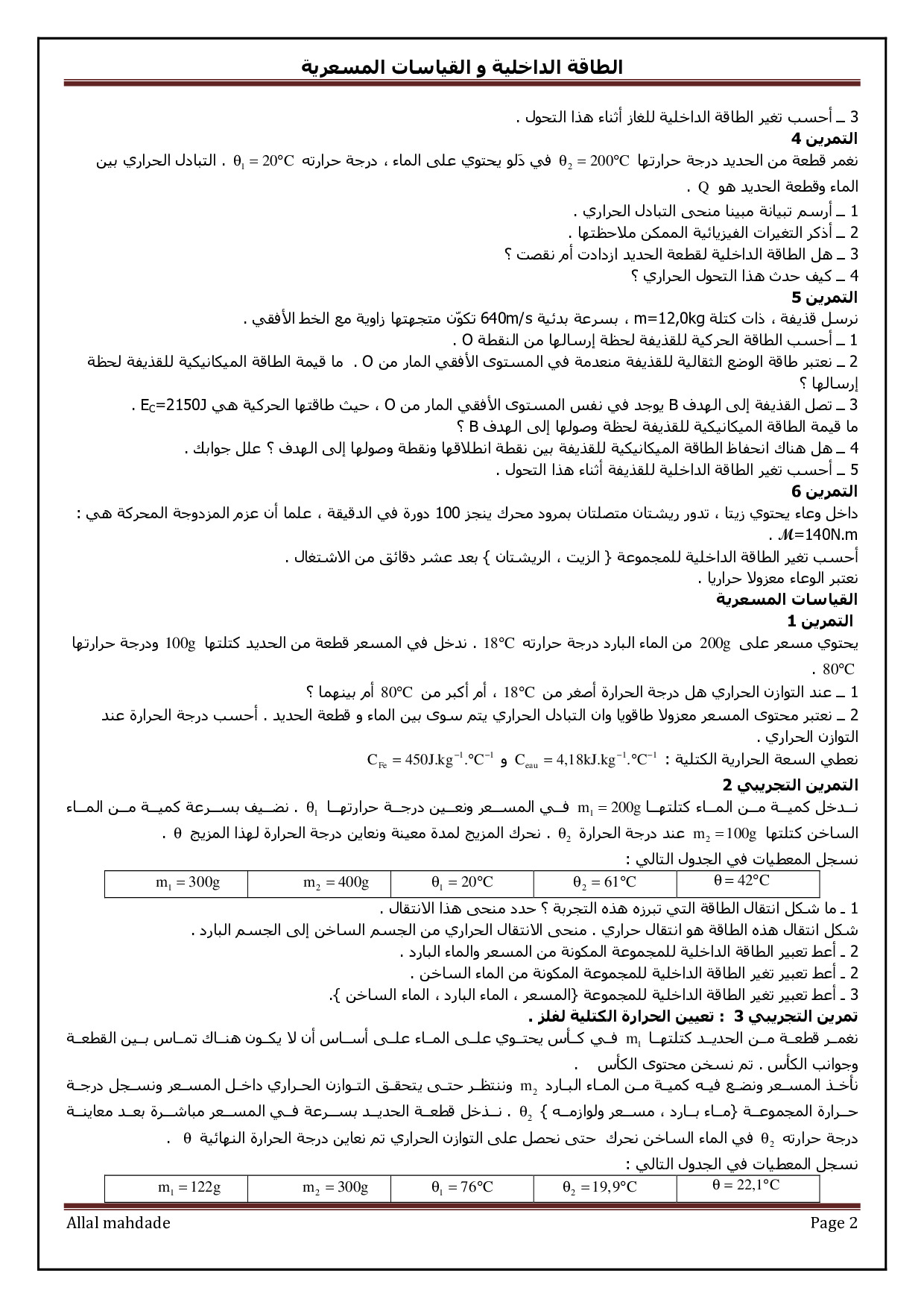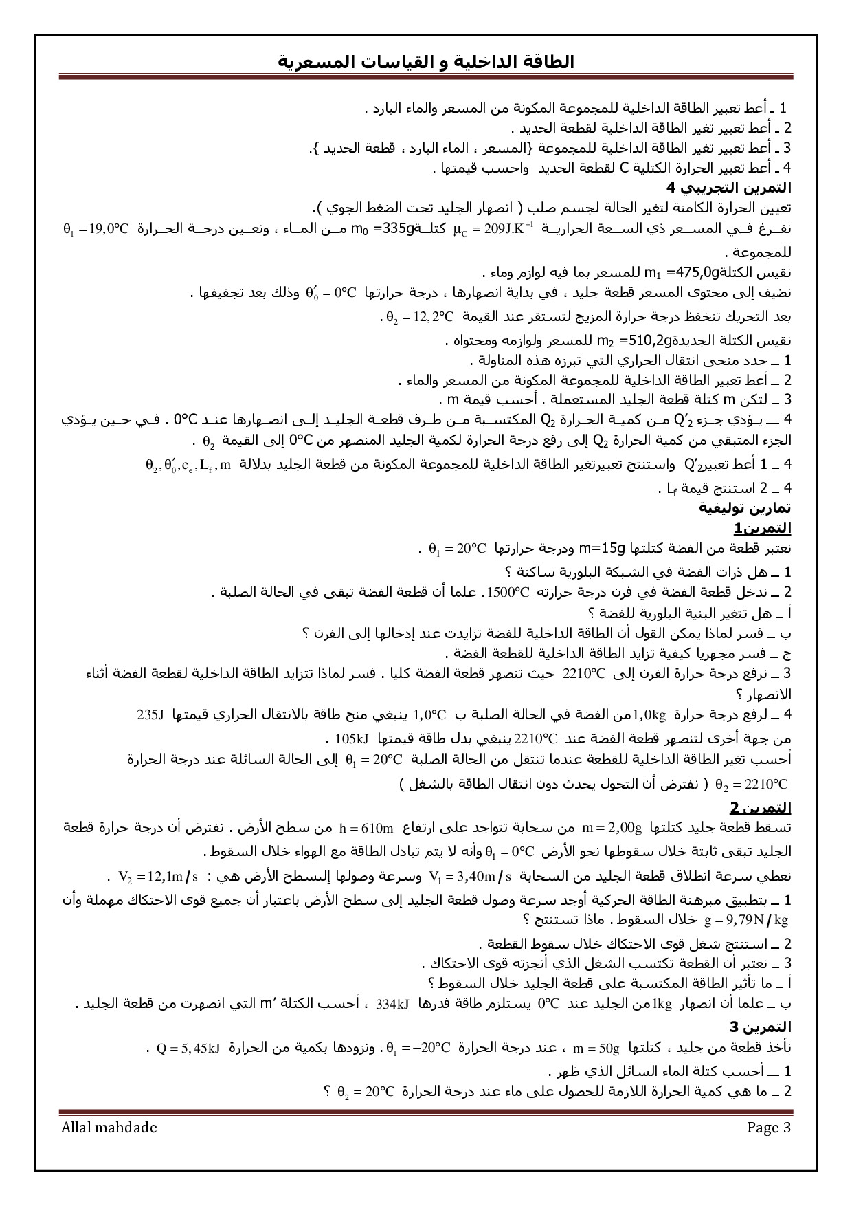 الطاقة الحرارية والانتقال الحراري - تمارين غير محلولة 3