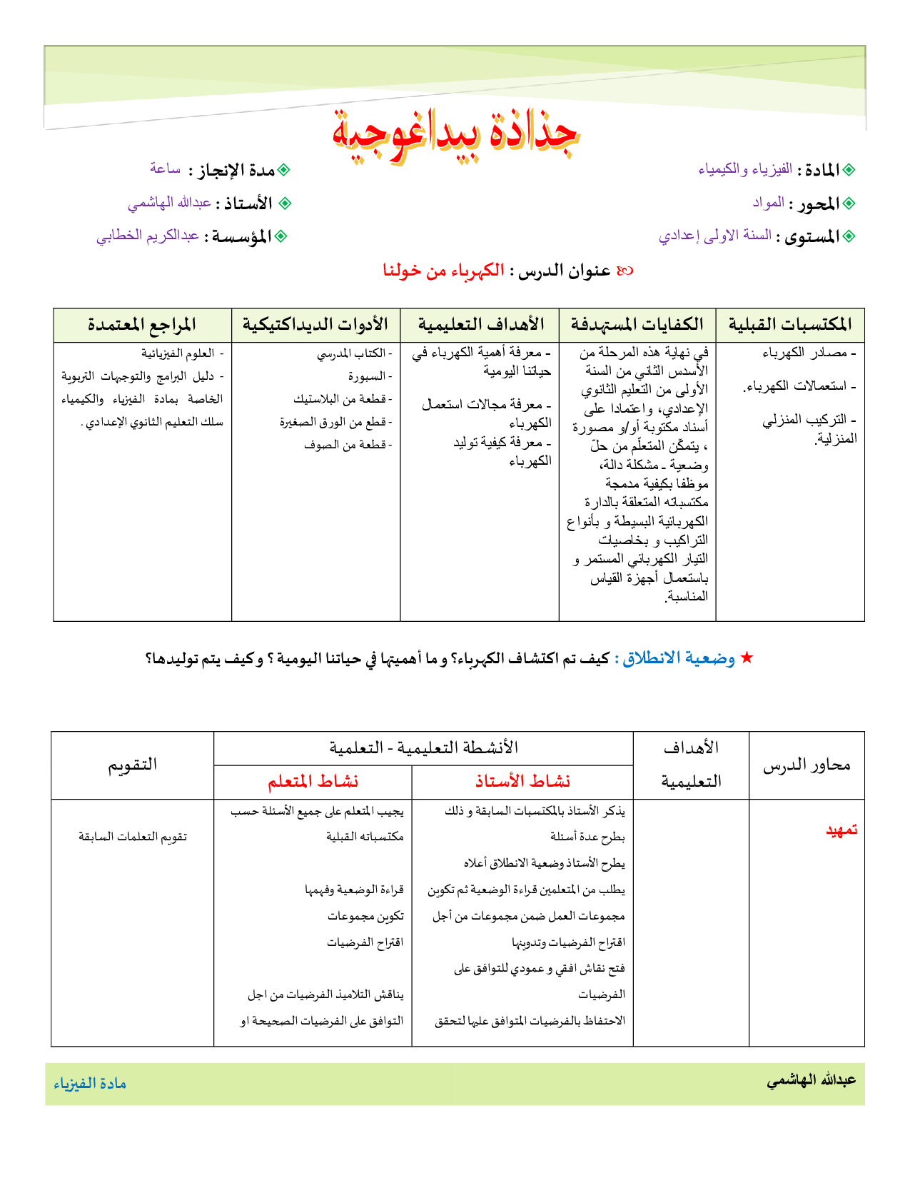 جذاذات الفيزياء والكيمياء للسنة الأولى إعدادي
