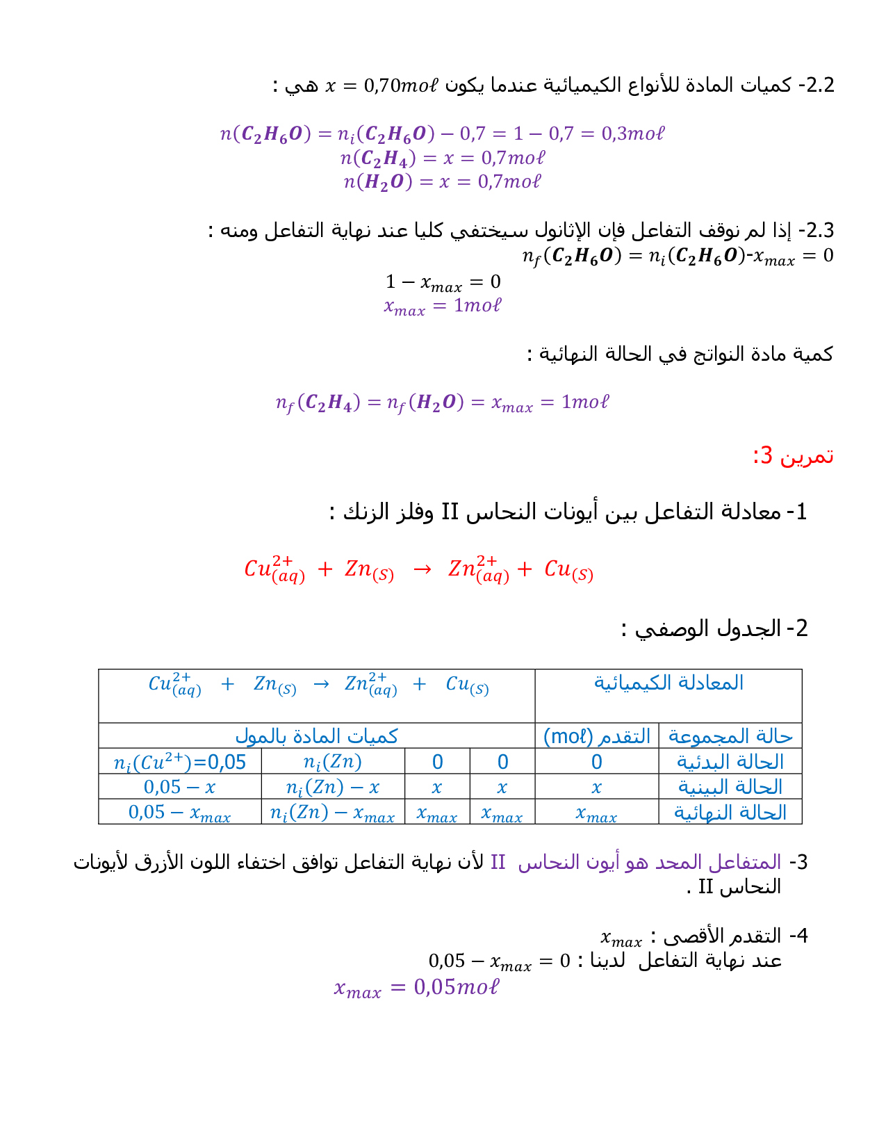 تتبع تحول كيميائي - تصحيح سلسلة التمارين 1