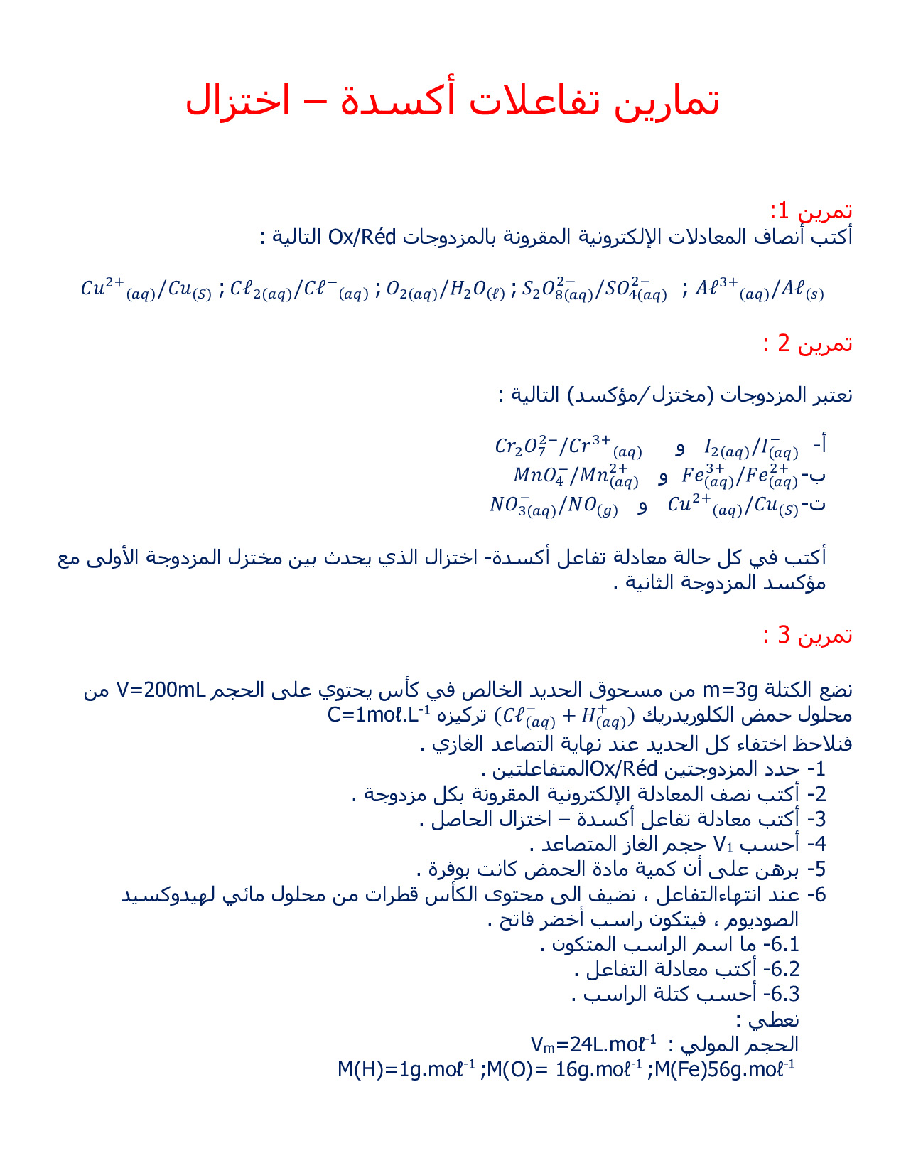 تفاعلات الأكسدة والاختزال - سلسلة التمارين 1