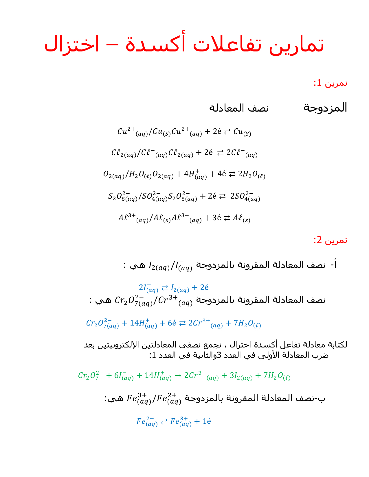 تفاعلات الأكسدة والاختزال - تصحيح سلسلة التمارين 1
