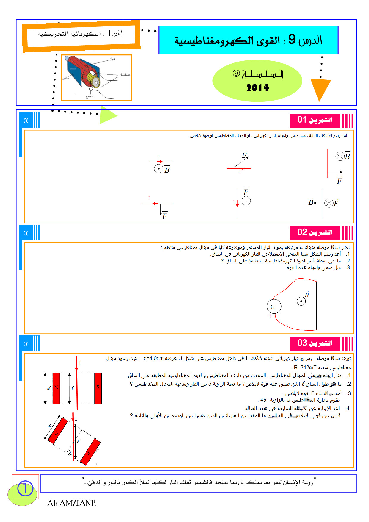 القوة الكهرمغنطيسية - قانون لابلاص - تمارين غير محلولة 2