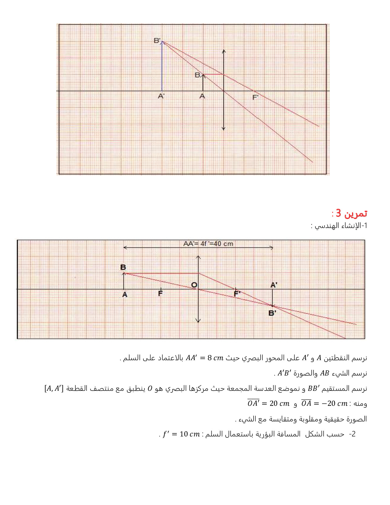 الصور المحصل عليها بواسطة عدسة رقيقة مجمعة - تصحيح سلسلة التمارين 2