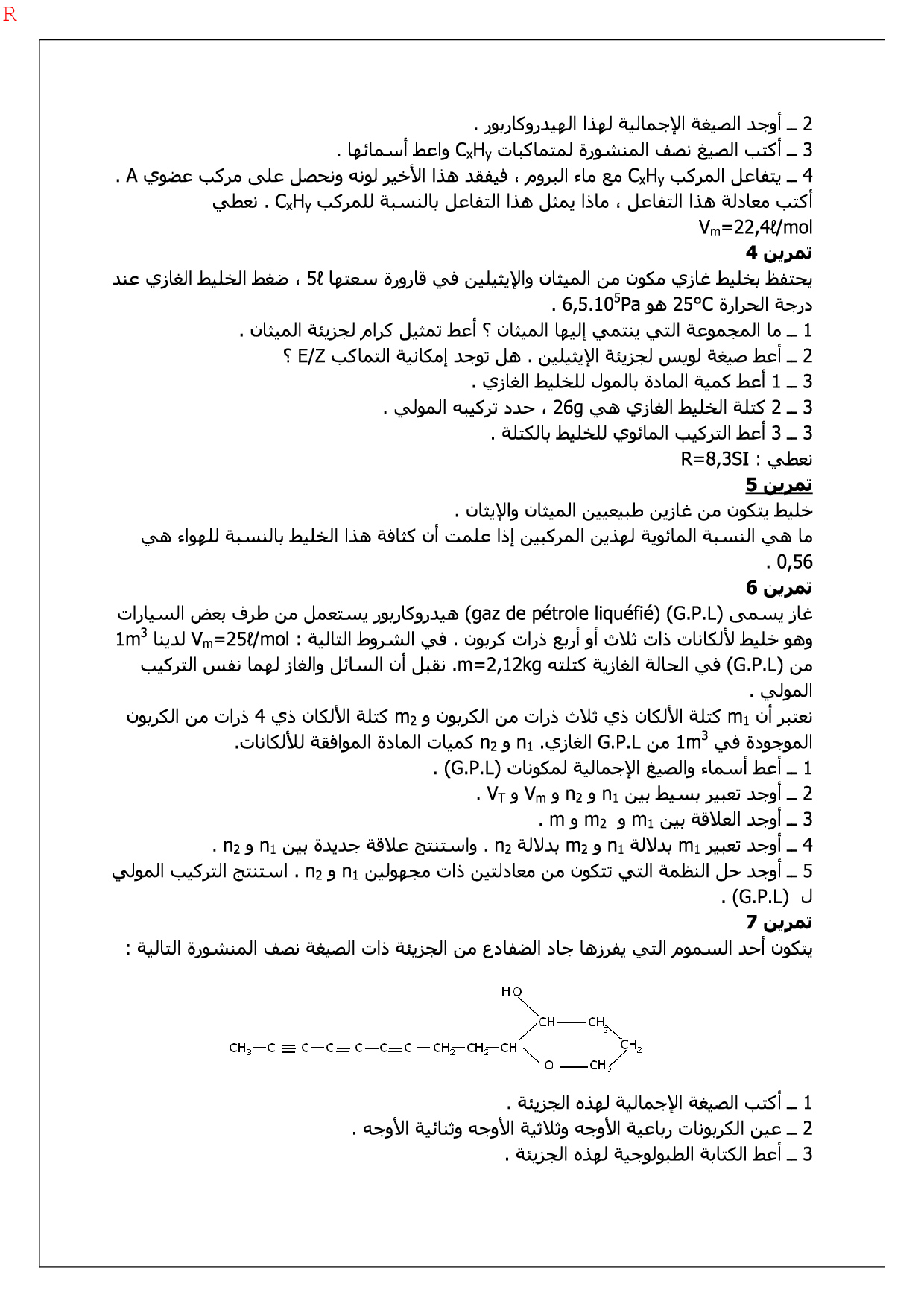 الجزيئات العضوية والهياكل الكربونية - تمارين غير محلولة 1