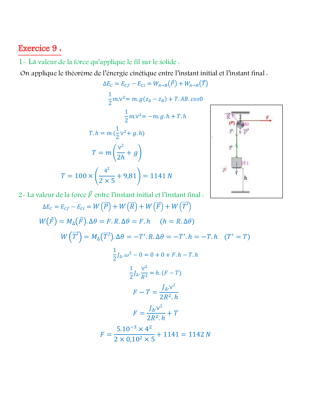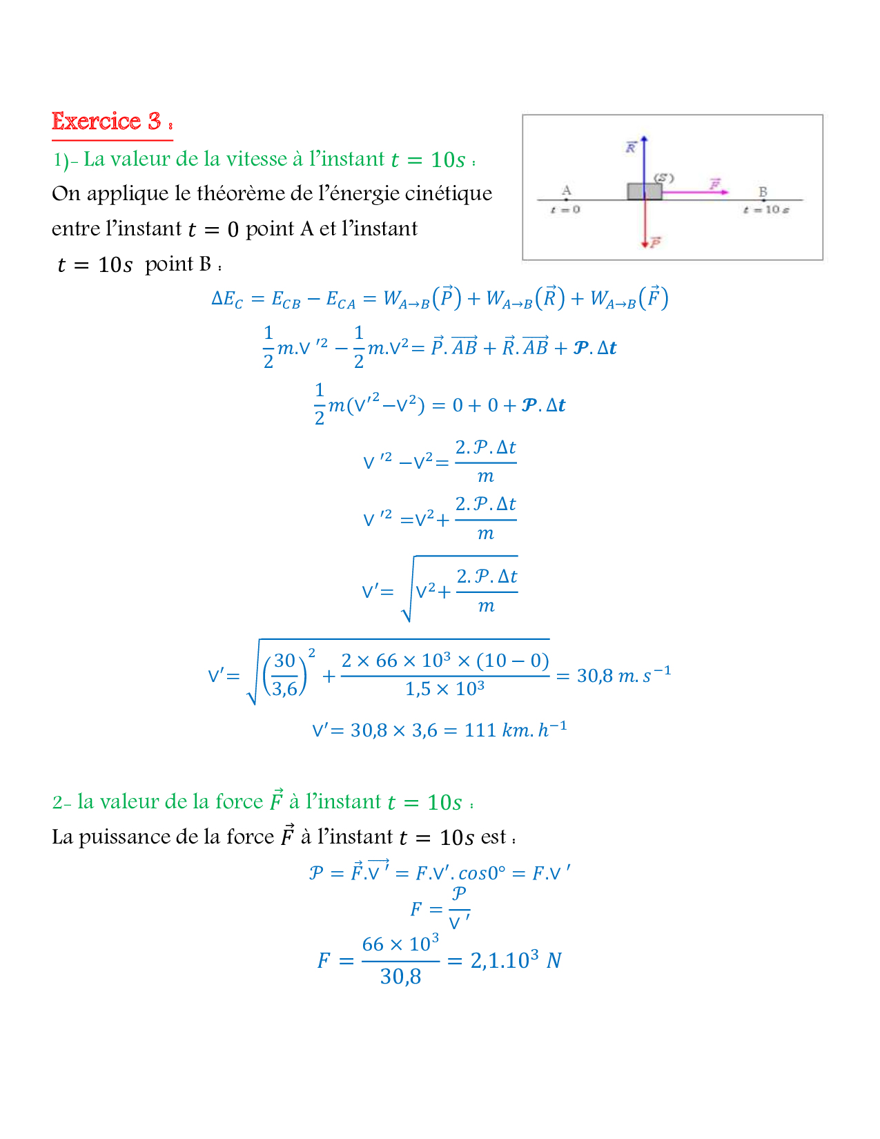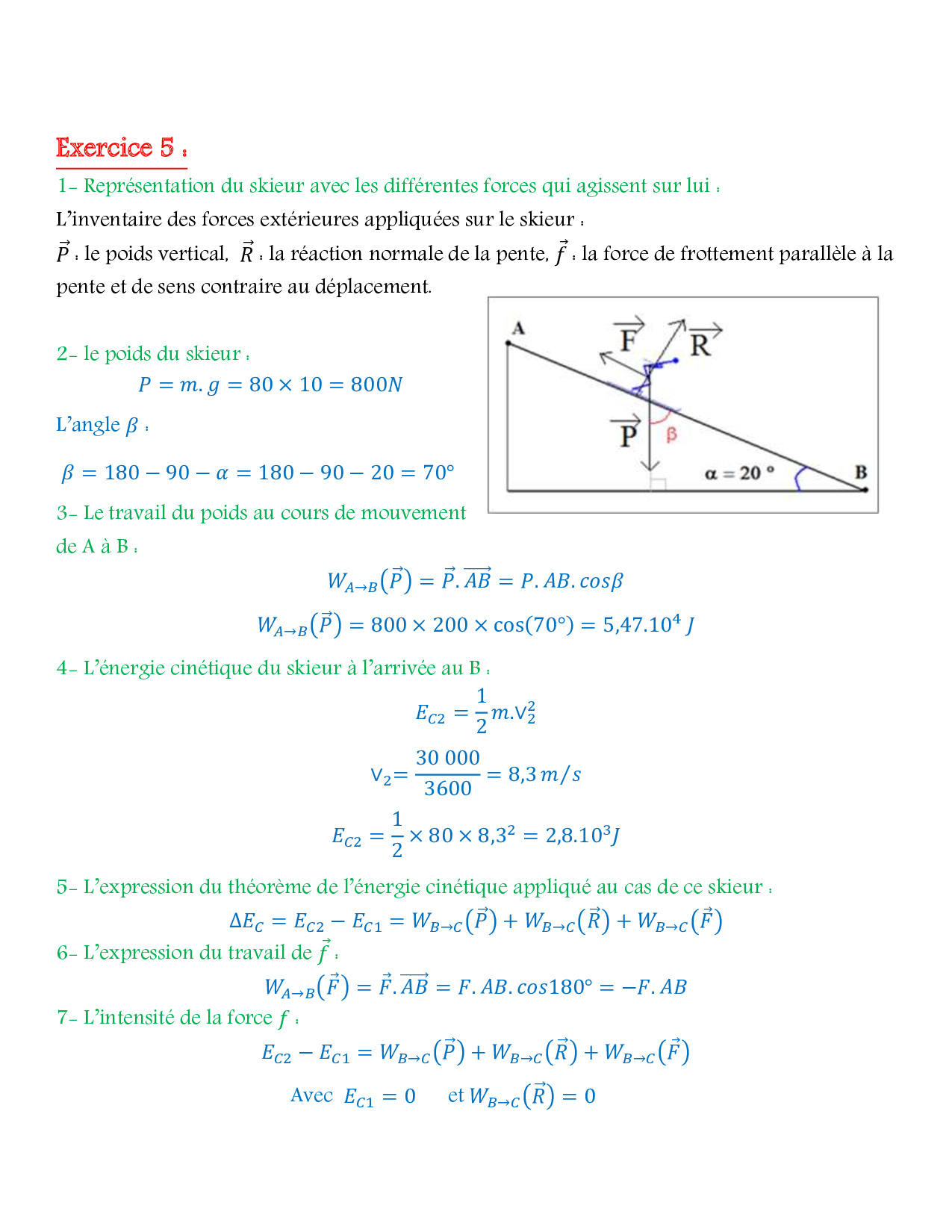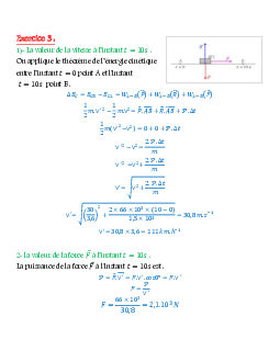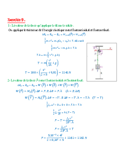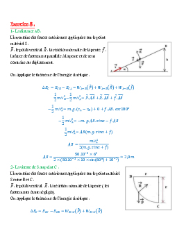 Travail et énergie cinétique - Corrigé série d'exercices 1