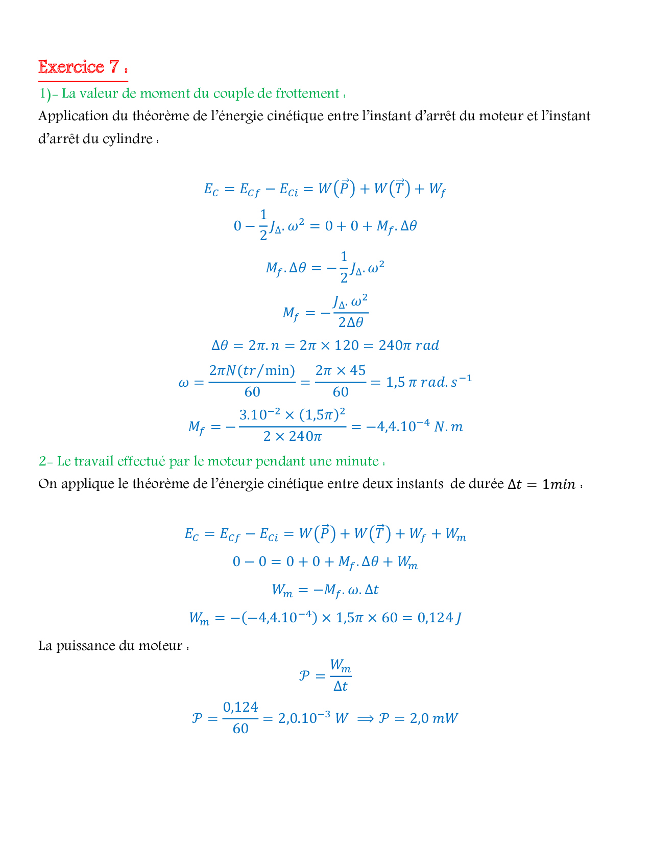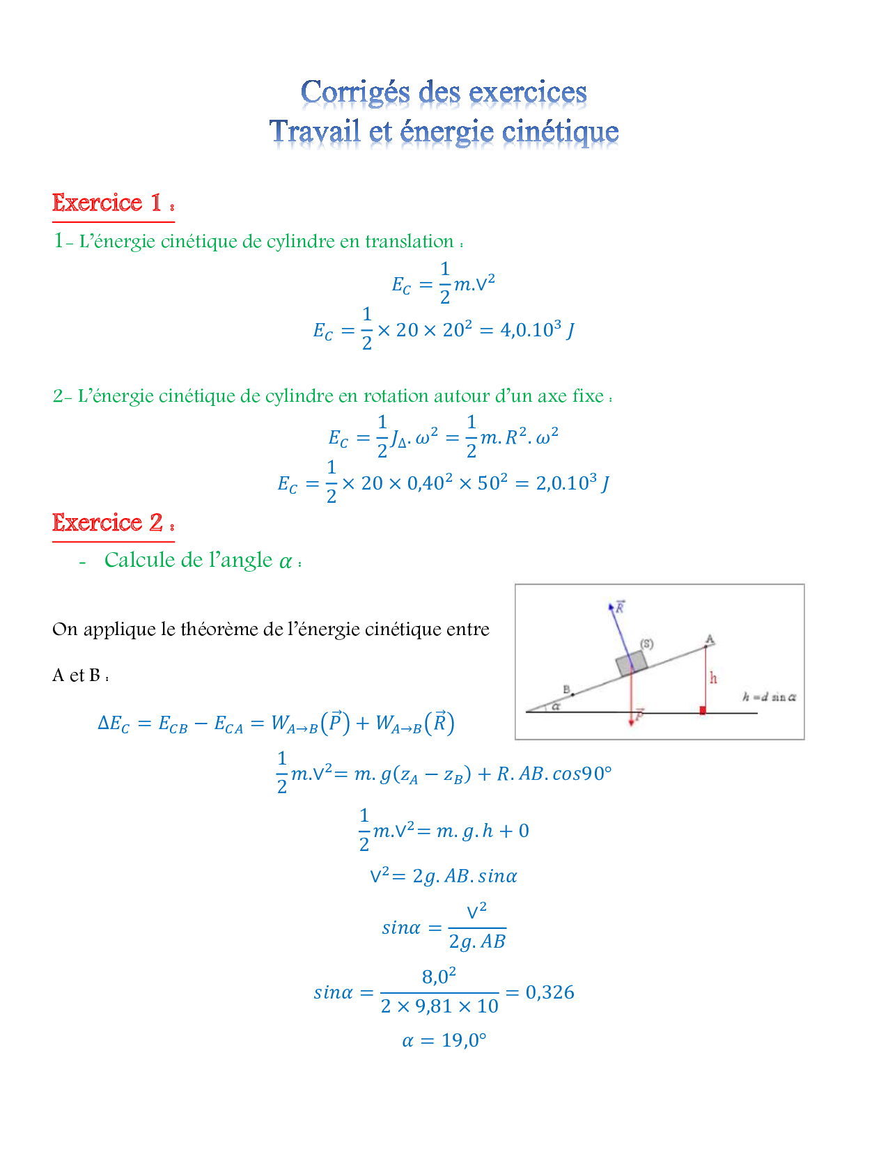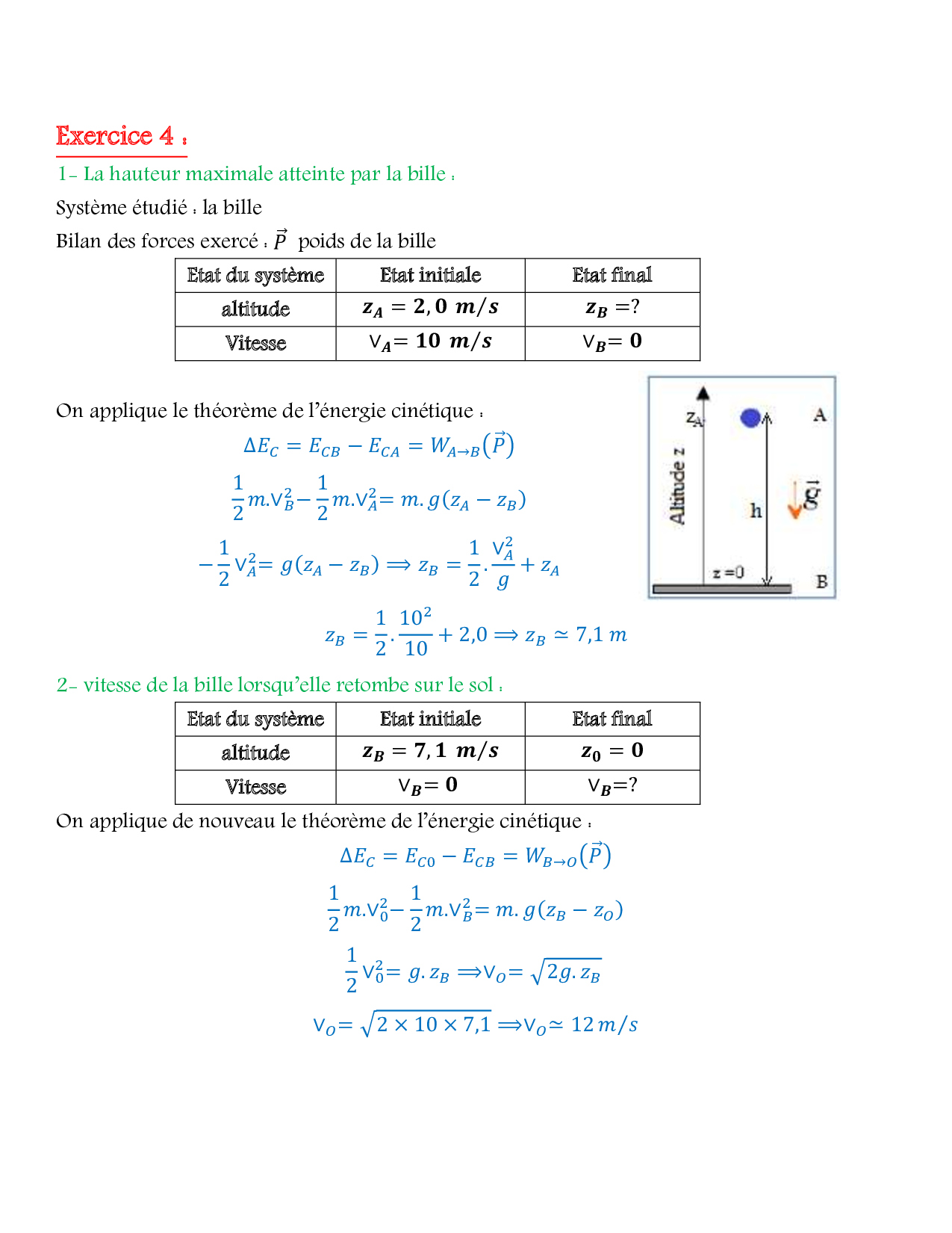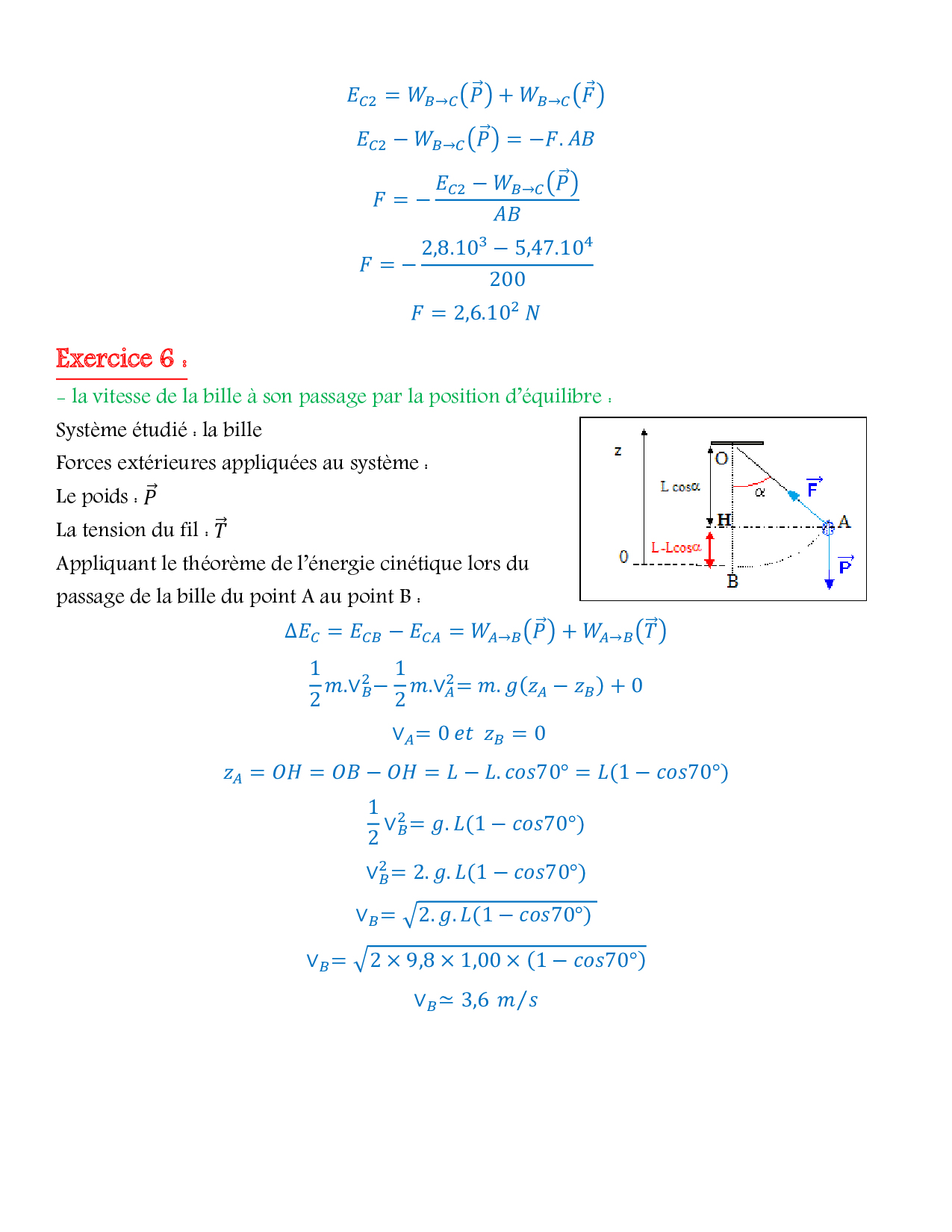 Travail et énergie cinétique - Corrigé série d'exercices 1