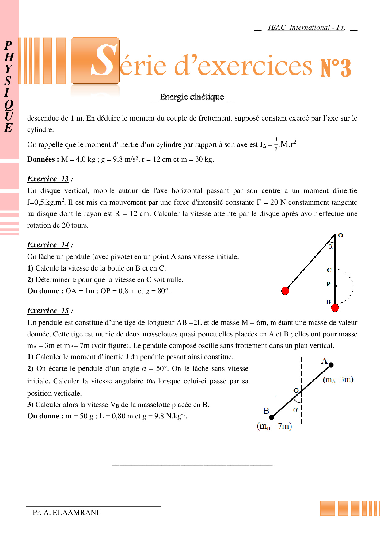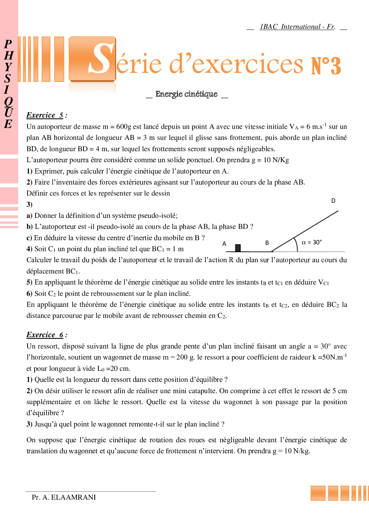 Travail et énergie cinétique - Exercices non corrigés 2