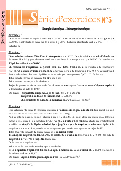 Énergie thermique et transfert thermique - Exercices non corrigés 1