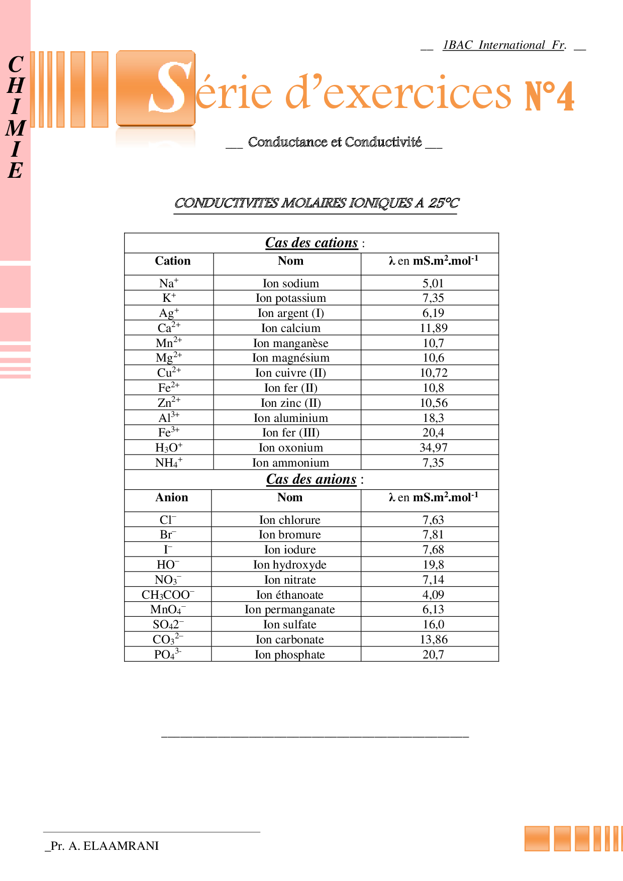 Mesure des quantités de matière en solution par conductimétrie - Exercices non corrigés 2