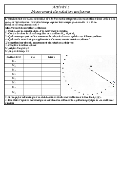 Rotation d'un solide indéformable autour d'un axe fixe - Activités 2
