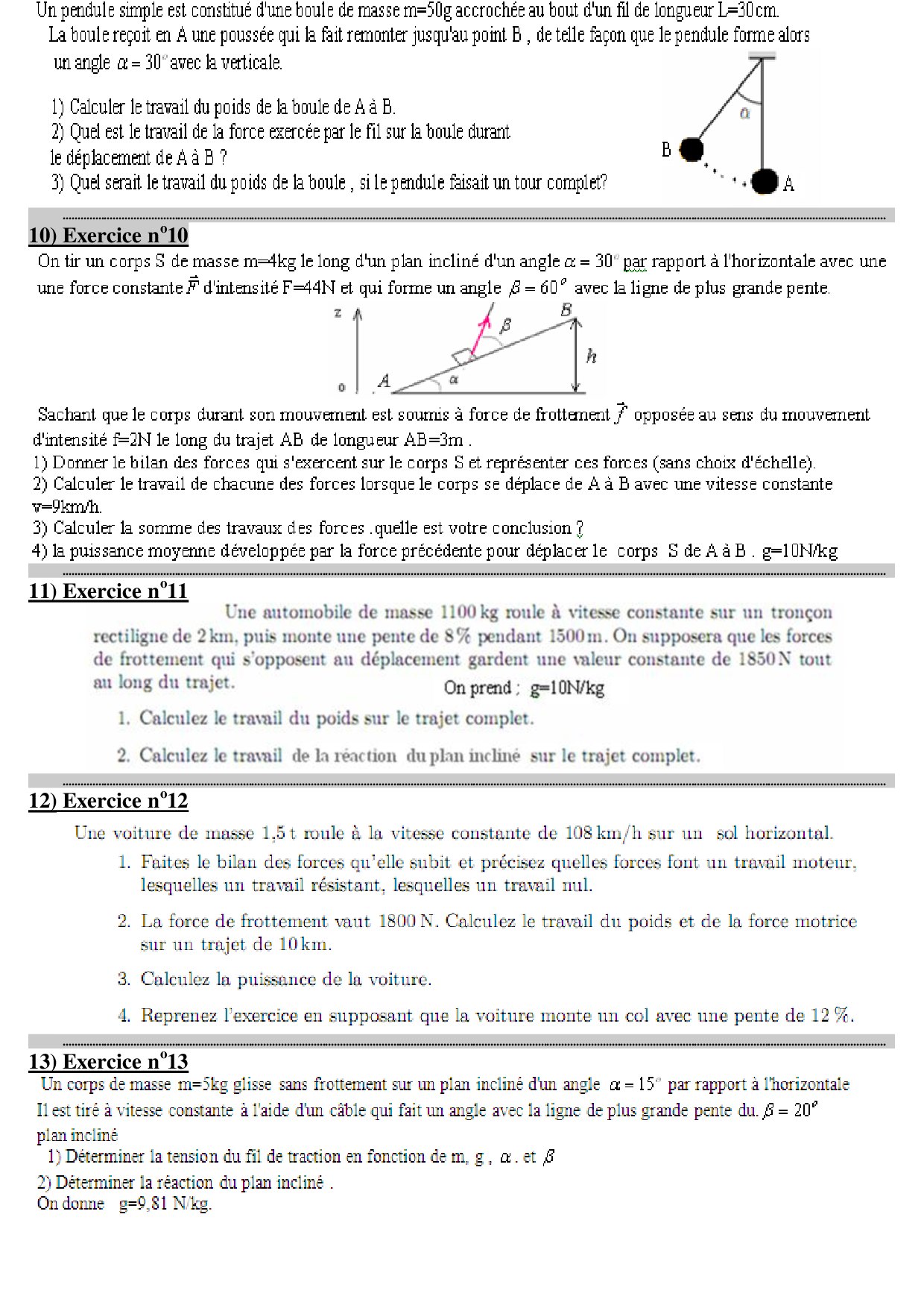Travail et puissance d'une force - Série d'exercices 1
