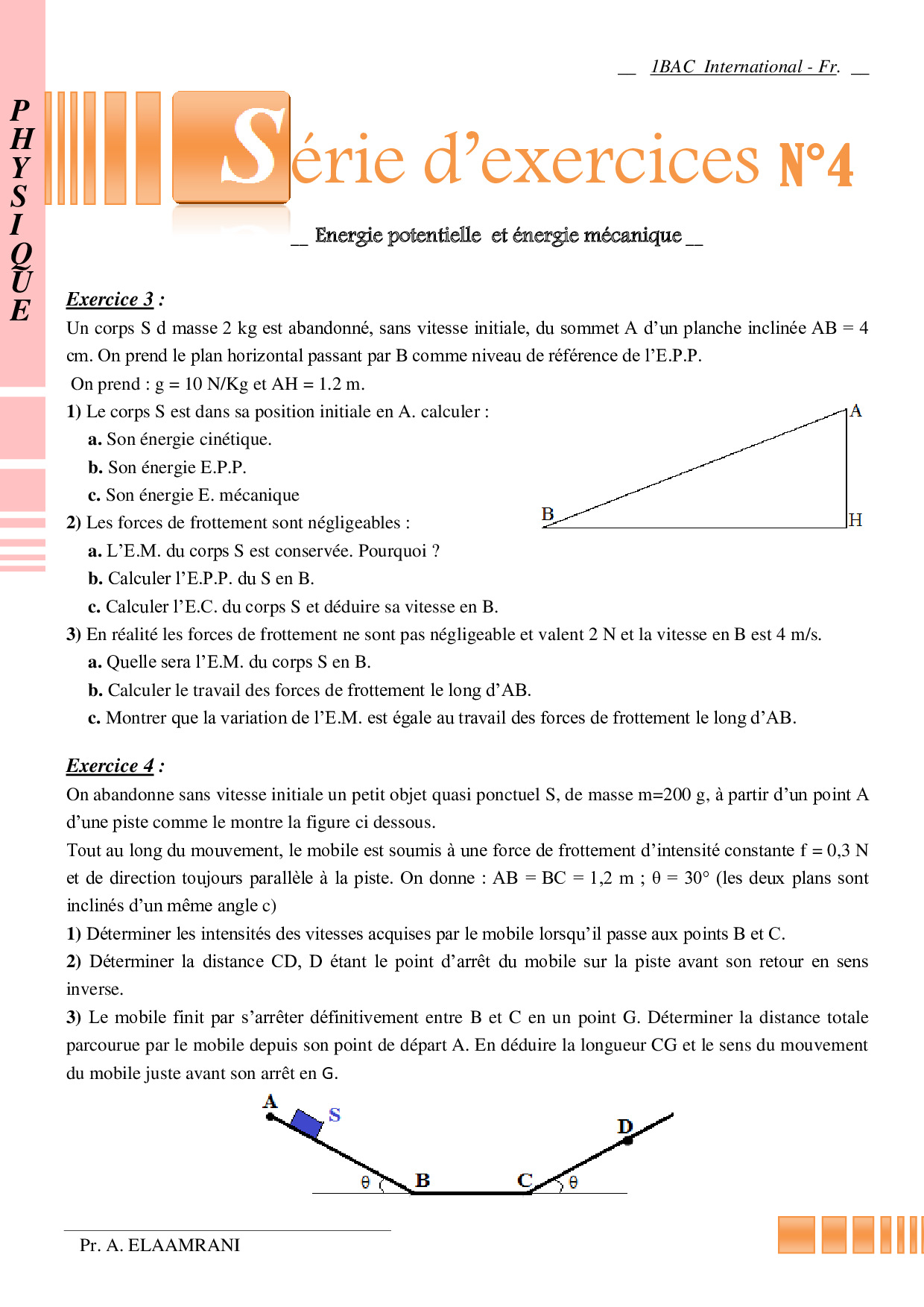 Travail et énergie potentielle de pesanteur - Énergie mécanique - Exercices non corrigés 2
