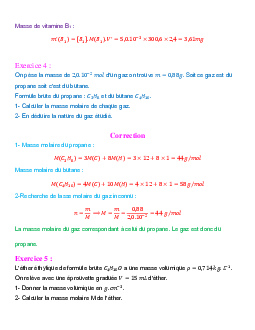 Grandeurs physiques liées à la quantité de matière - Exercices corrigés 1
