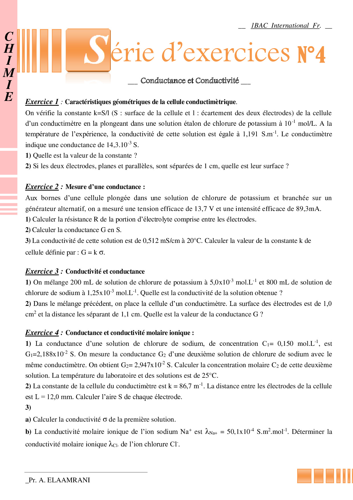 Mesure des quantités de matière en solution par conductimétrie - Exercices non corrigés 2